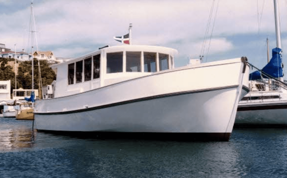 “My first memory of Dad’s boat building was when he built a speedboat in our garage. He named it Cee Bee II and was very successful in his racing days.The first boat Dad built was “Marco Polo”, built in our backyard for some local fishermen. Next was Music, built from scratch, as a family we spent many hours in the boat shed building her. Unfortunately she caught fire and burnt to the waterline. Dad managed to get his hands on some of the burnt timber and made a scale model incorporating the timber into the finished piece. After Music, and I think I’ve got the order correct, was Harmony, Souza, Largo and finally Coda. Jim Carey, previously from Picton, built the hull for Harmony and it was sailed across and finished in Wellington by Dad, and possibly another but I can’t remember sorry. Coda was purchased in Picton, the wheelhouse was removed and rebuilt by Dad, giving it his look and practicality.“
