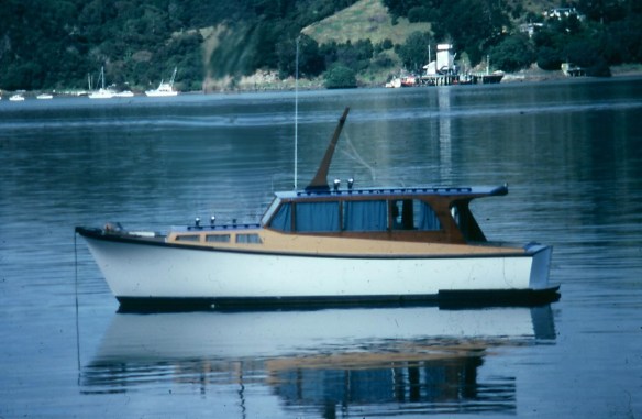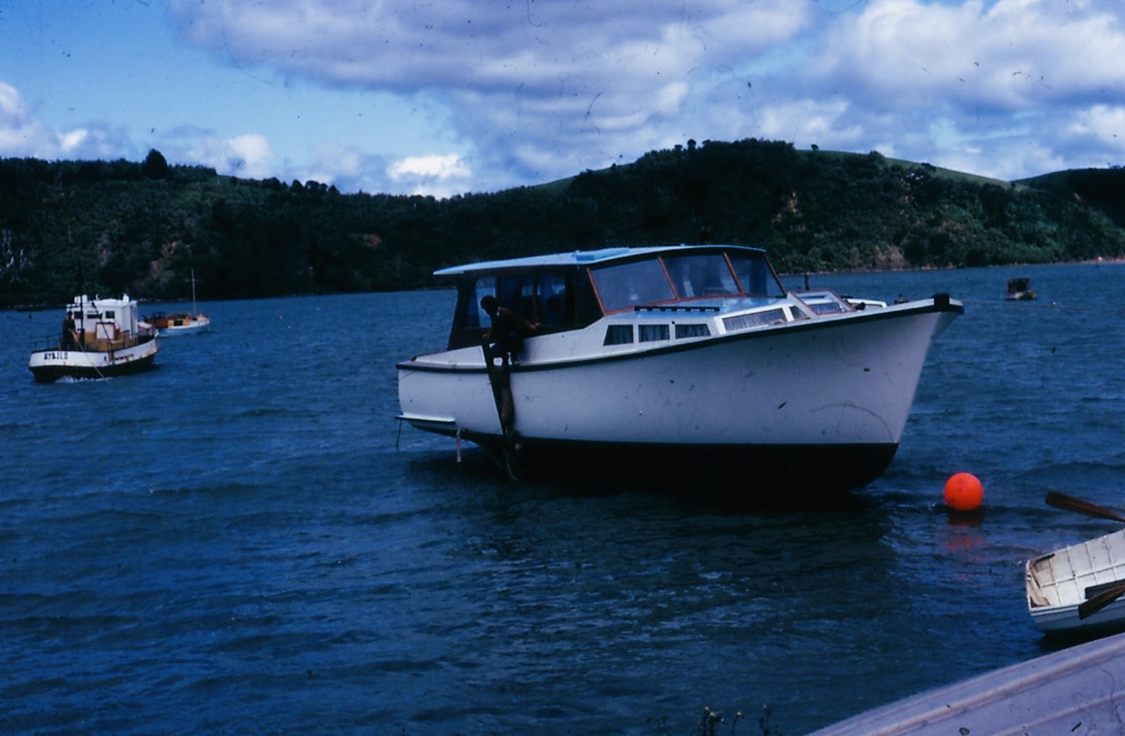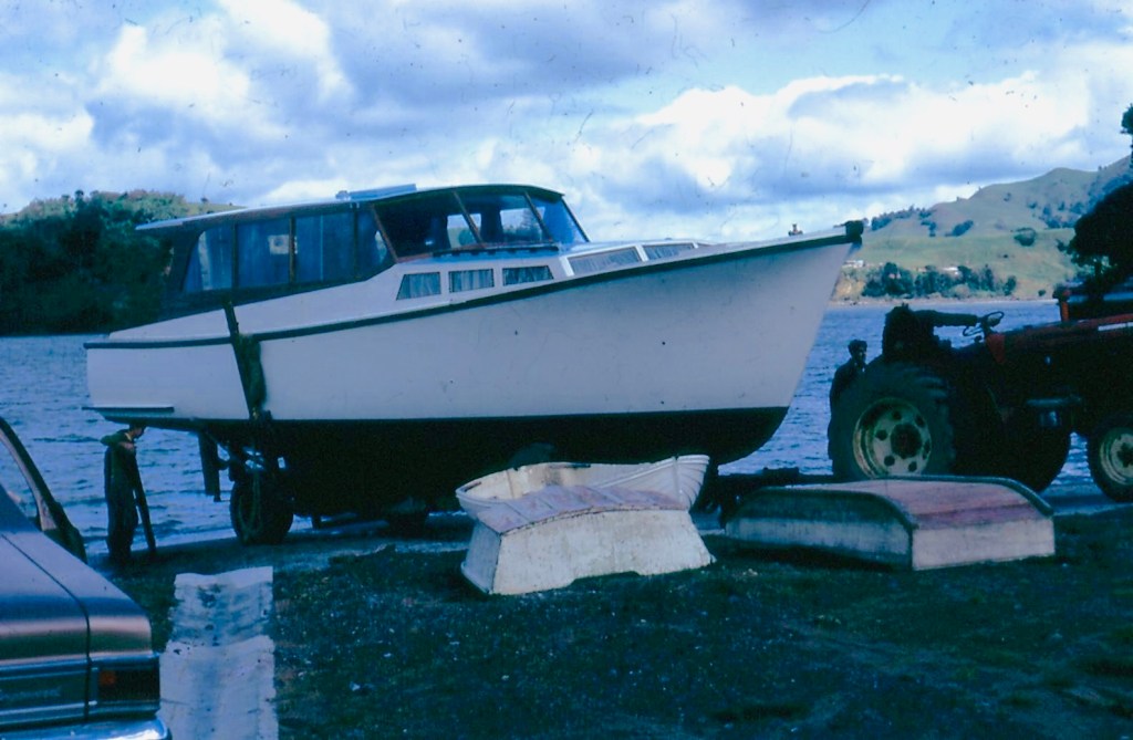 At Christmas time that year, when the man from Auckland came up, we gave him and his family a trip down the Whangaroa Harbour. He looked it all over from a tradesman’s point of view, and said, ‘Well, if anyone had told me that a farmer with no boat building experience, and no tools apart from a band-saw and hammer could produce something like this, I would never have believed them’