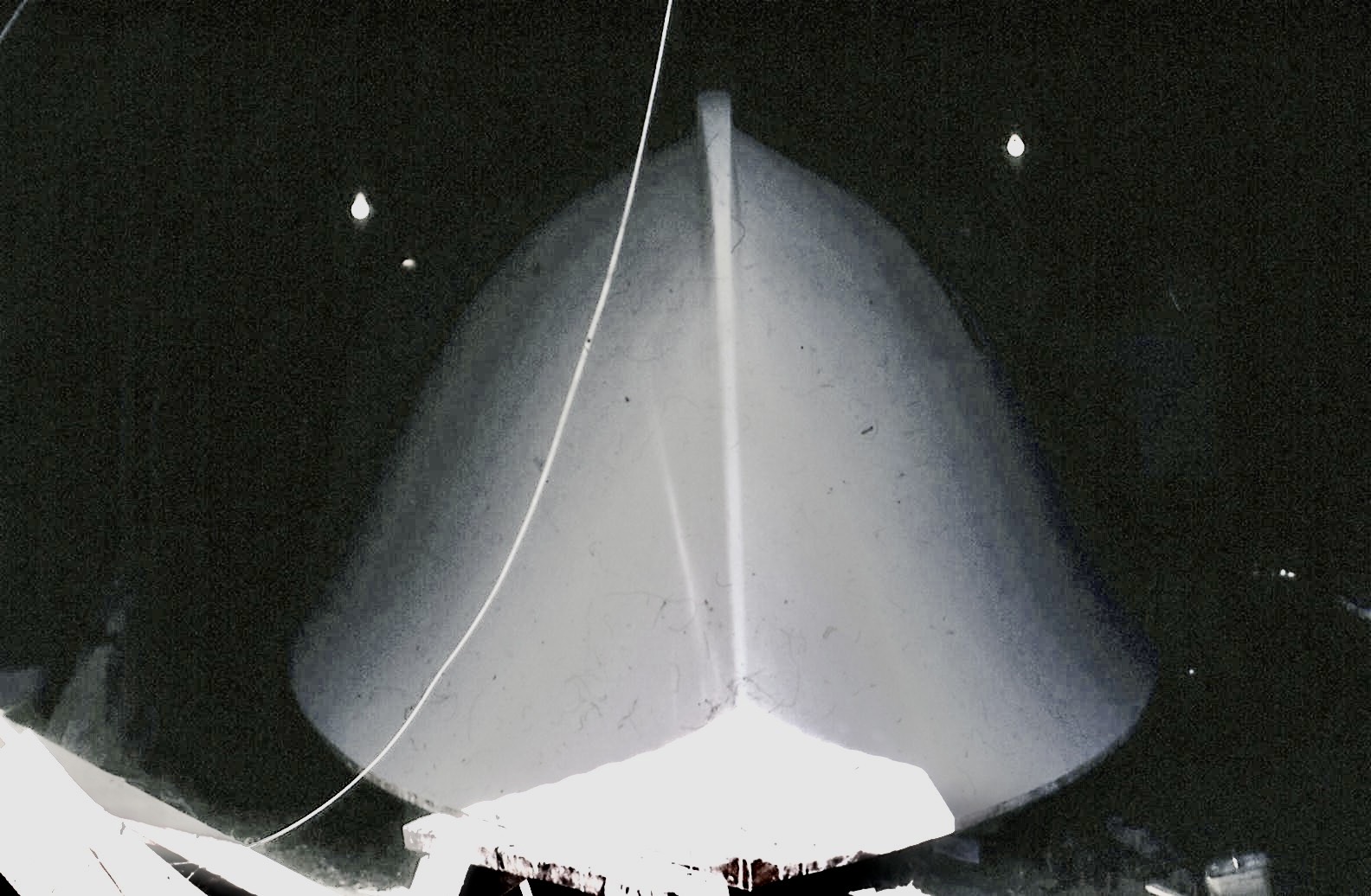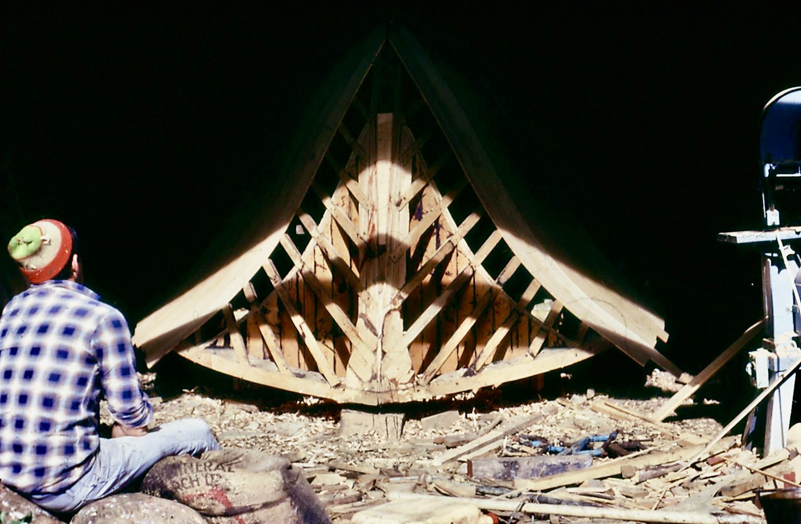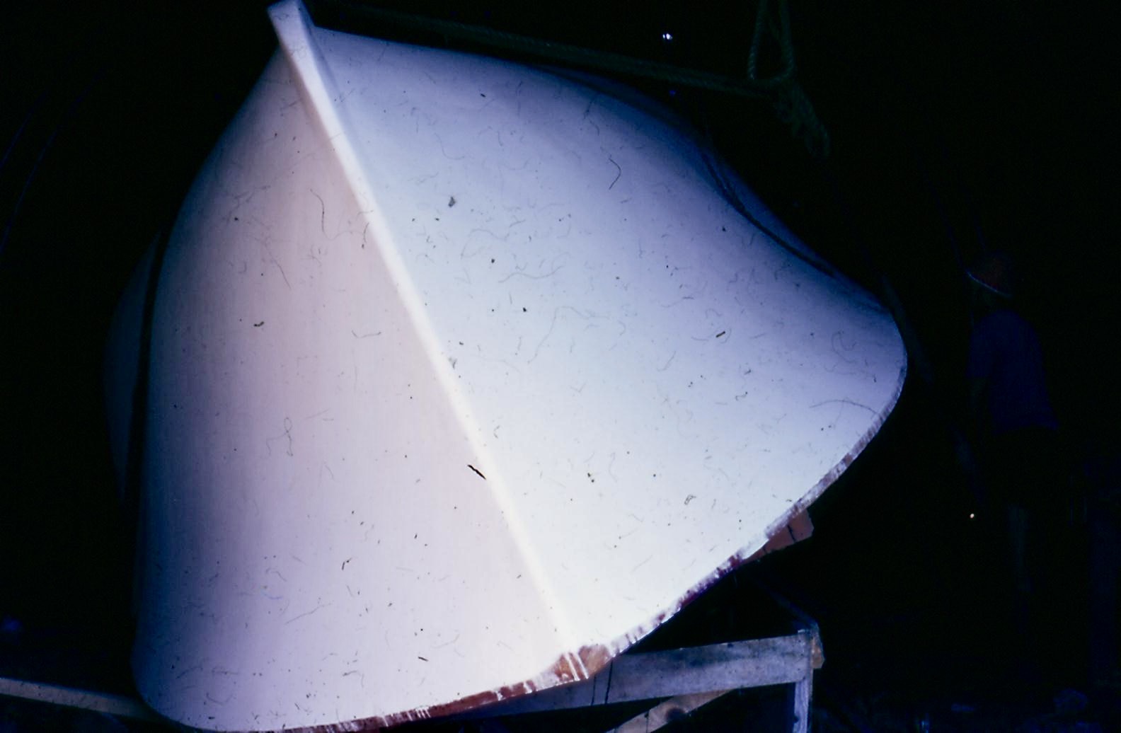 In May of 1973, the hull was ready to be turned over. The keel was in place with the hole for the rudder bar already done. The day for turning it over came, and was a matter of great curiosity for the neighbours. It proved to be a very long job even with some of their help. An endless chain was used for this, and it went up inch by inch, finally making it after eight or nine long hours.