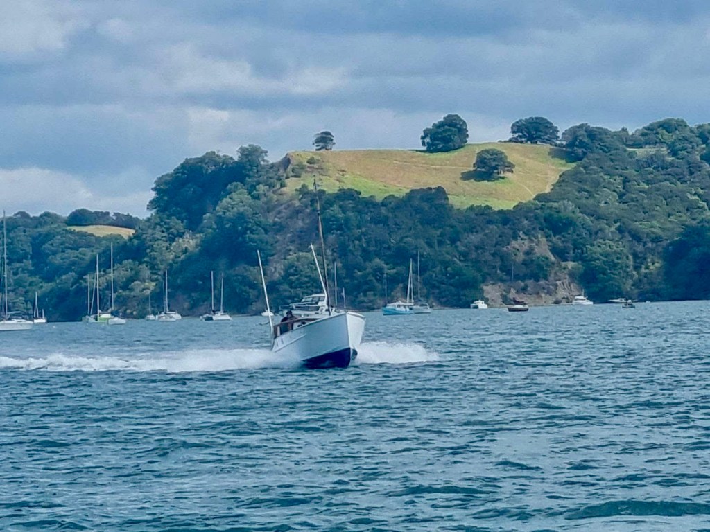 Then it went down hill on Saturday morning – confusion around the start time for the launch parade – 1/2 the boats thought 10am, now I’m told it did say 9.30 in the classic yacht club newsletter, but……. the % of launches there that were members would have been less than 20%, so the parade was very patchy with skippers joining at different times. Numbers were down and the loop of Sullivan’s Bay was embarrassing- less than 20 people on the beach and I suspect they had no idea what was going on. BUT – still good to get together. Parade aside there was an impressive number of classic wooden launches in the harbour, in terms of pure classic craft , launches would have out numbered yachts by 4:1Most turning up to just enjoy the weekends activity on the water.