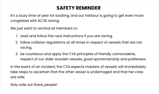 The CYA has its major annual sailing regatta coming up next week – if you’re out and about in your boat- might be a good idea to fender up 😉