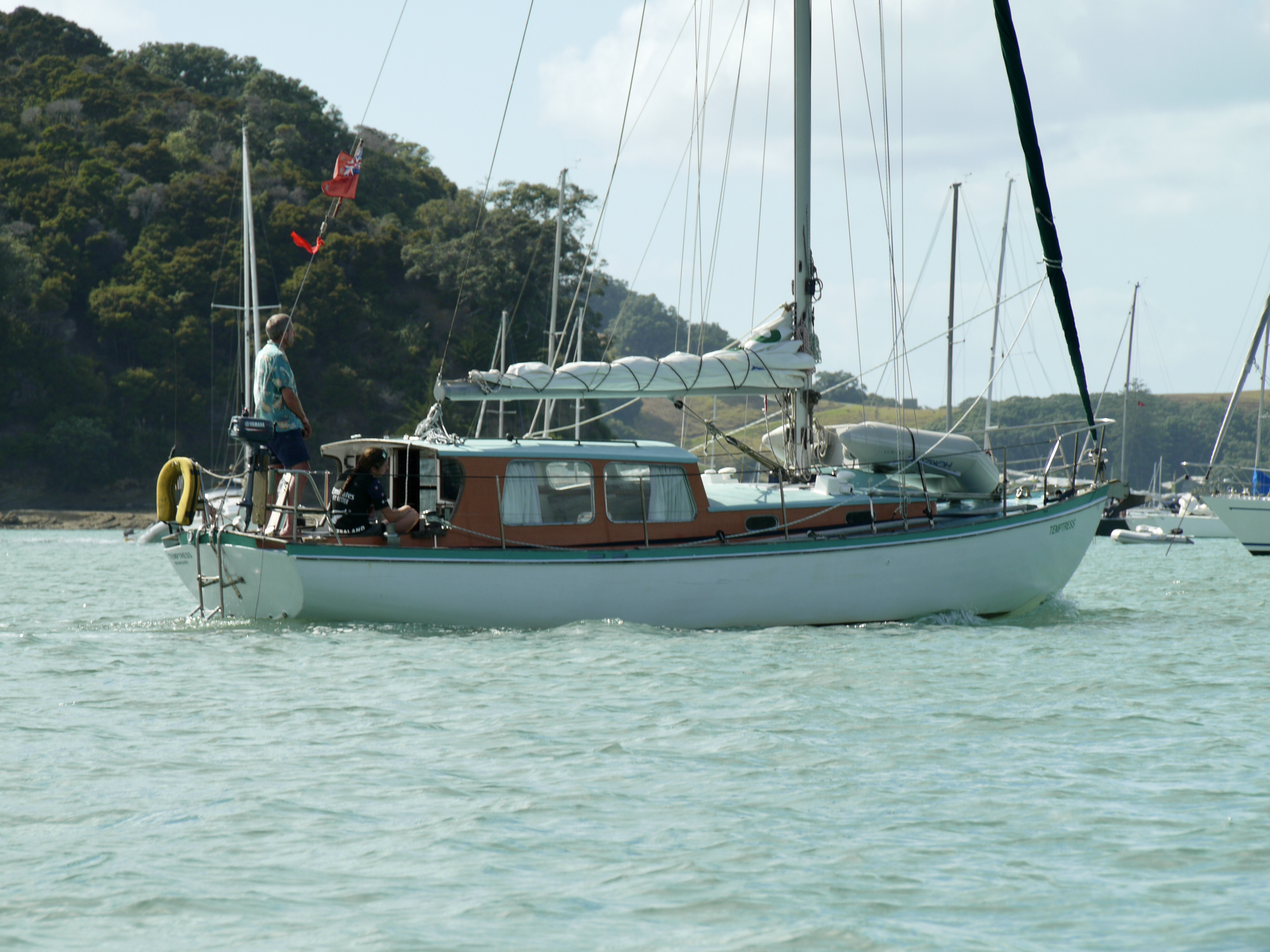 Woody Colin Pawson sent in the above photo of the sloop Beatnik that he snapped during the week at Great Barrier Island. She is flying a CYA burgee, but doesn’t ring any bells with me, maybe a name change or a very new member?