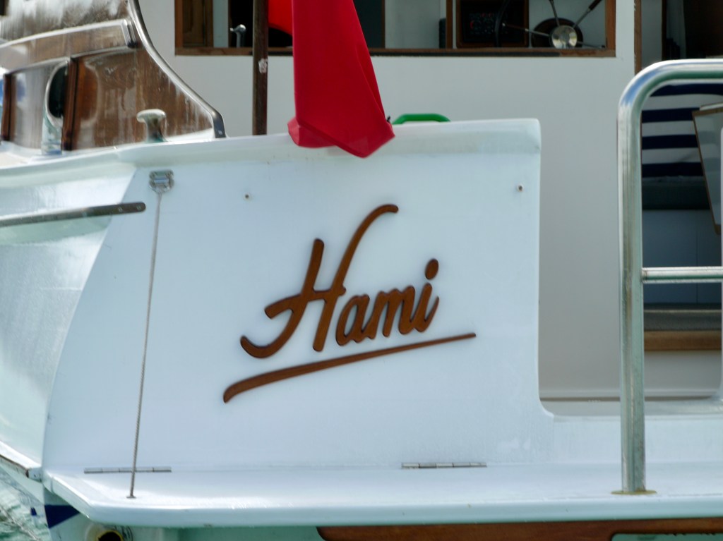 Her ‘cockle shell’ clinker dinghy is rather cute.