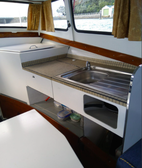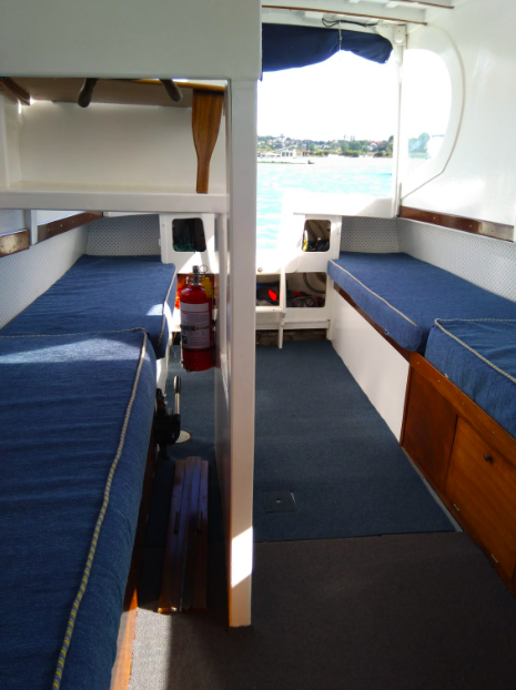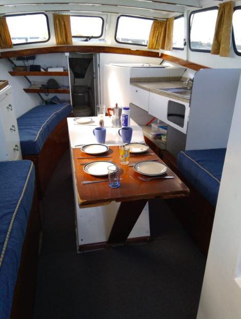 Forward motion is via a 100hp Nissan diesel engine. In the 2022 WW story the engine was said to be a LD28 rated at 88hp, and a top speed of 12 knots. Also the length was 26’ then – so it seems she has been eating a few pies.