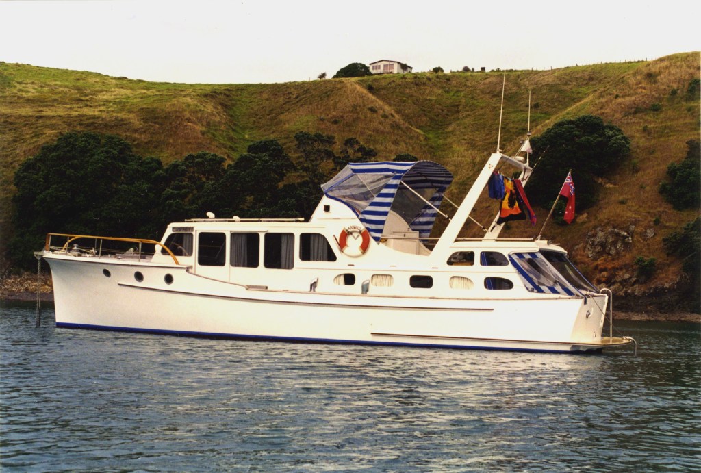 The only boat with these engines, is the first 40 ft Vindex to be built, designed by Jim Young, & built by Orams, of 2 skins of Kauri, in Whangarei, in 1972.