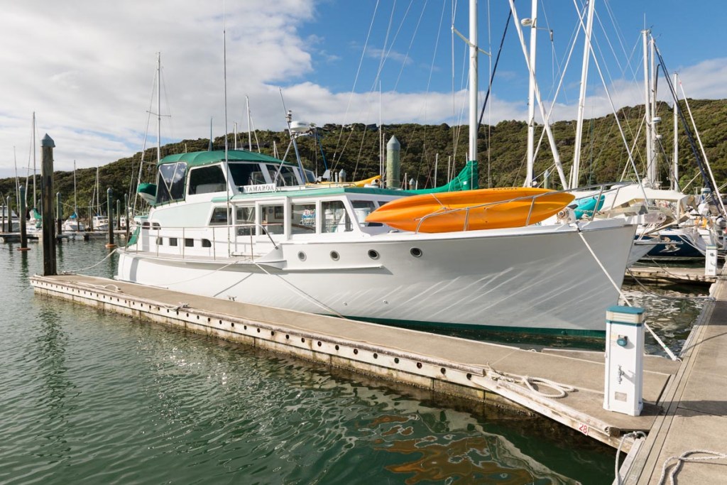 There is or was also, around the 1970s/80s era, a UK custom purpose-built rescue craft here, painted orange & blue, fitted with 2 x Thornycrofts, which was moored at Matiatia at one time.