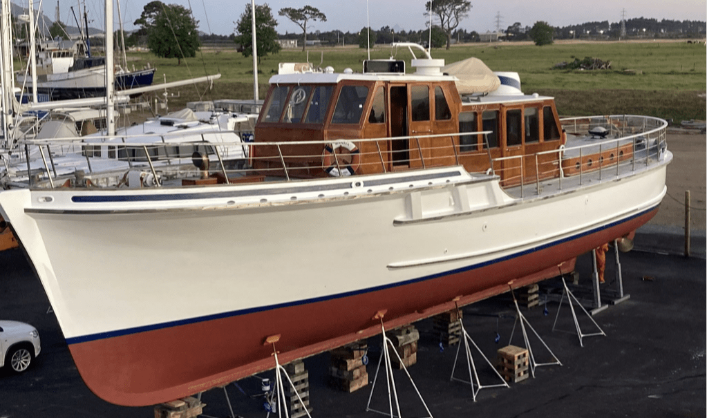 Another of the RR-powered boats is the OHORERE, built by Percy Vos in Auckland for the government of the day to be a high-speed fisheries patrol craft, and designed by Thornycroft in the UK. However, she never reached anything close to her anticipated speed projections as required in the order from the government to the designers and builders. Large sums of money were spent collectively by the designers, Rolls Royce, and the builders to give her better performance, but they failed miserably, and she was ultimately sold to private ownership, where she has been used for many years now for fishing charters in Tauranga. As of now, Rolls Royce’s were replaced about two years ago with 2 x 770hp MTU marinized Mercedes Benz diesels and is capable of around 30 knots.