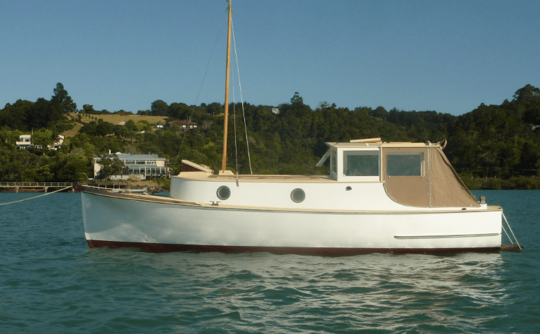 Todays woody the 23’ MANDALAY just ticks so many boxes – Its built of full length kauri carvel planks in 1932 – Kauri backbone – copper fastened on steam bent ribs – it has a modern engine >Yammer 3GMD 23 hp – 4 berths – standing headroom in the wheelhouse – easily driven by an auxiliary outboard.