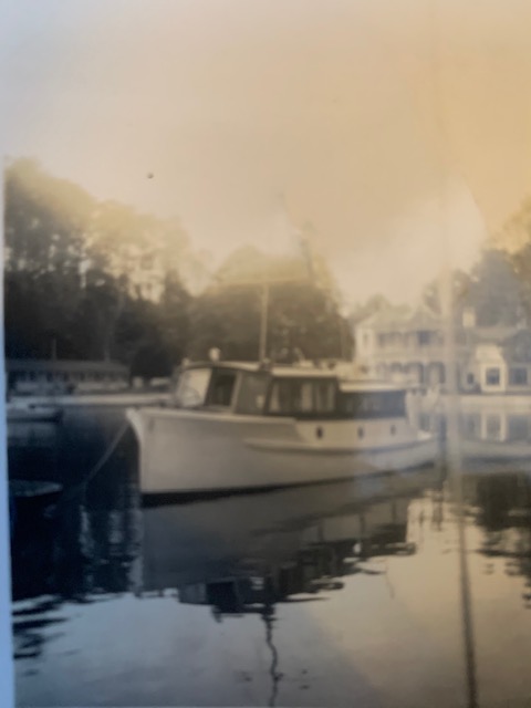 “Starting with boat #1, we see the Lane Motor Boat Lady Sandra owned by Len Peckham, with Len visible at the flying bridge.At the time of launching she had a seek coamings profile, but Len discovered shortly after her launching, that that sleek low profile made it very difficult to see from the downstairs helm, so he had the Perspex dome, as seen in the image fitted soon after launching, to overcome this shortcoming.Power at that time, came from 2 x 90 HP Scripps flat head 6 cyl petrol engines, in right at the stern under large hatches, in the built in aft deck, — (she had no cockpit), which faced forward & drove through intermediate shafts to detached Vee drive gear boxes that doubled a 2 to 1 reductions gears to the prop shafts. Lane Motor Boat was one of the very early boatbuilders to fit silencers to petrol engines, & along with the Wanda II, Connie V, Sou East and Nor West, she had almost silent exhausts well above the waterline, out the stern, & in her case, along with the 2 sister ships Nor West and Sou East, built around that era as well, she had side facing cowls over the exhaust outlets directing the exhaust gasses in to the slipstream along each side of the hull, which seemed to work very well. Peckman sold her after only a very few years.