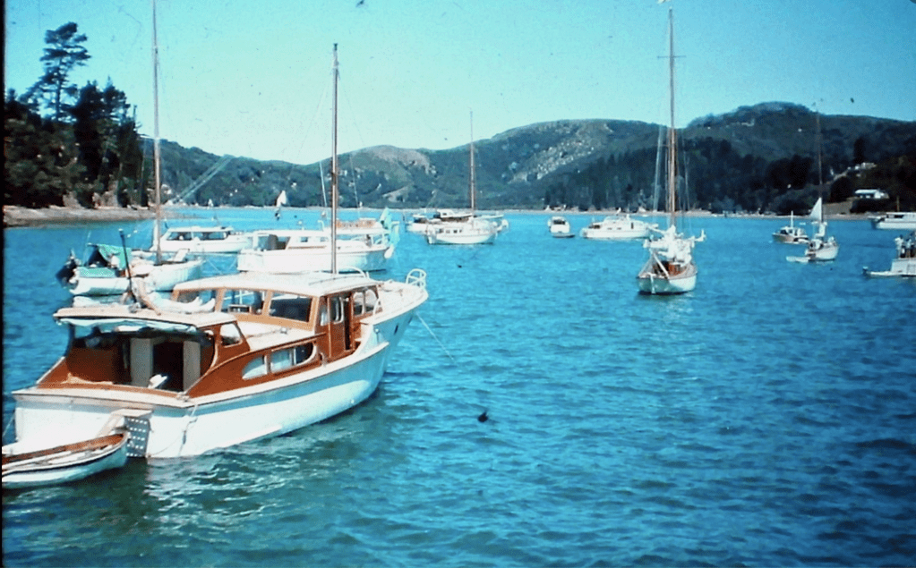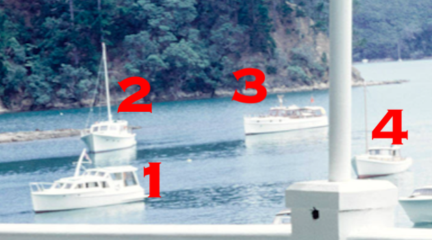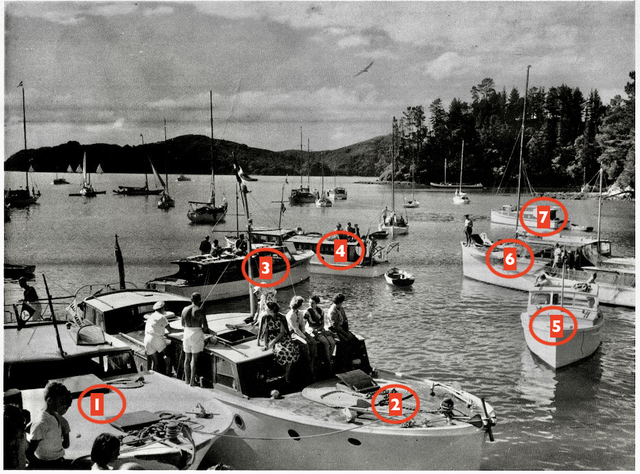 #5 is the 28′ Fred Lidgard built, sedan topper for Frank Pigeon. Frank can be seen with his head out the hatch as if he is looking to tie up.Frank owned Sunny Bay, Kawau Island & Fred built the boat which had no visible name on her exterior that I can recall, for Frank, as transport to & from his property, & general use for collecting stores & visiting friends around the island.
