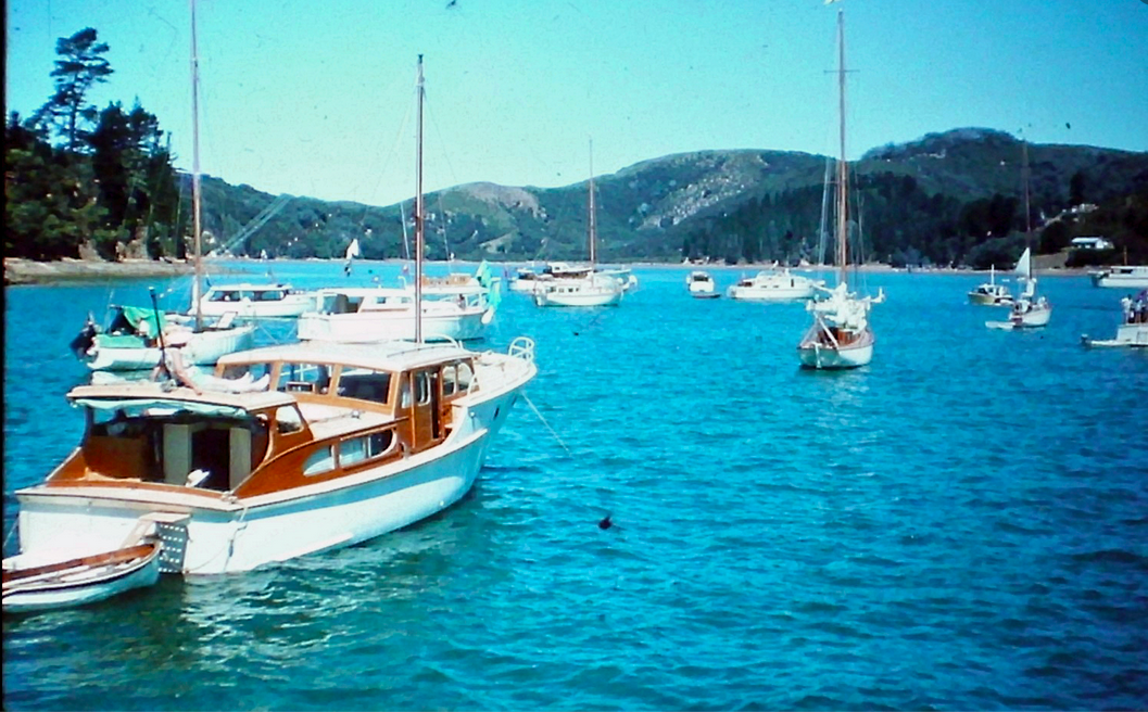 At Sundays Stillwater woodys picnic I was chatting to boat builder Greg Lees and he showed me the above photograph (in its frame) of Mansion House Bay, Kawau Island that a neighbour had given him. Interesting that for once the bay is almost bare of yachts – maybe they were off racing at the time.