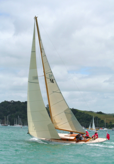 Below the top photo is another from Jim Tatterfield of Little Jim (A16) in full flight. A looker when launched and still is today. The bottom photo of LJ is ex Mahurangi Regatta a couple of years ago.