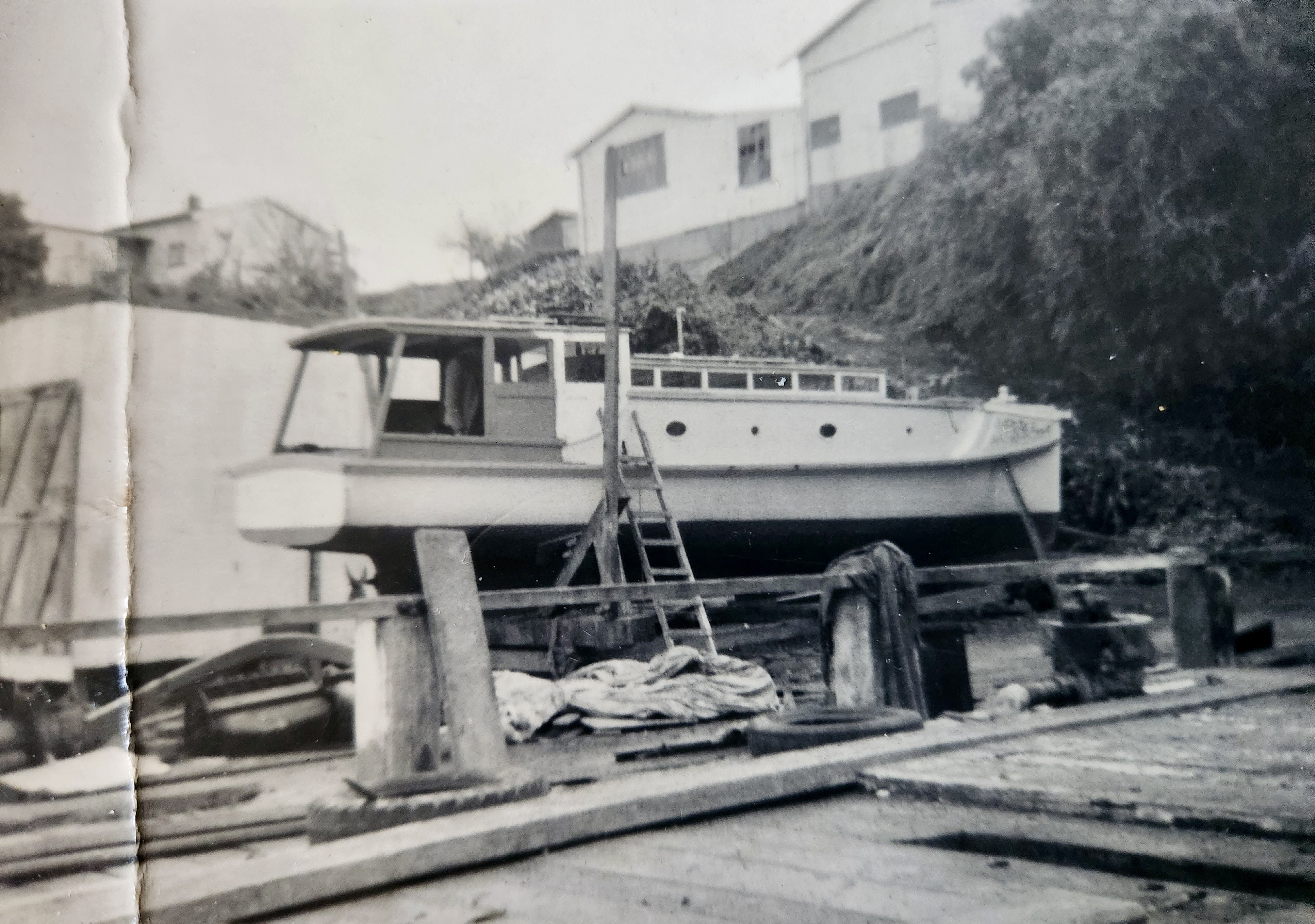 In her early days ( see b/w photo below) she fished commercially (cod and crayfish) in the Otago and Stewart Island areas, and later in her life was converted to pleasure use.