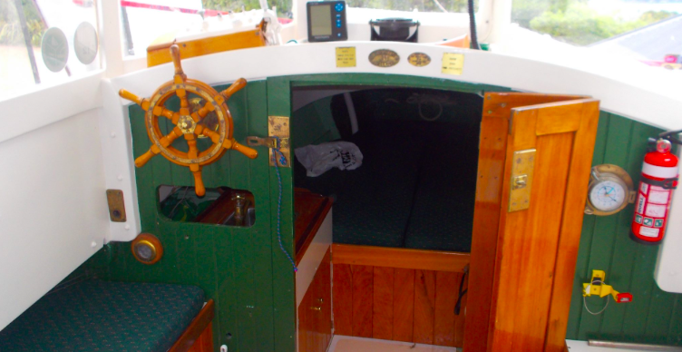 While it appears from the photos that she has lost her varnished coamings – I can report they were never varnished – the finish was a very smart brown paint and made of ply.