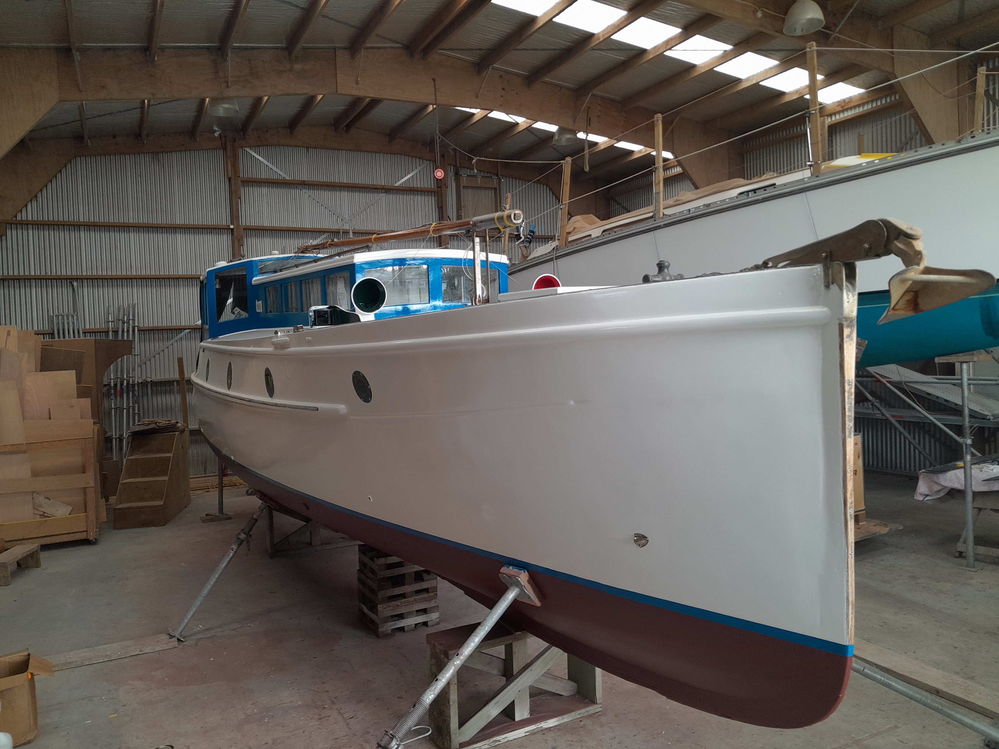 The 30’ 1914 Lane Motor Boat Co.designed and built launch Mapu has just emerged from the Blair Boats yard in Oromahoe, Harare (Far North) after a some TLC.