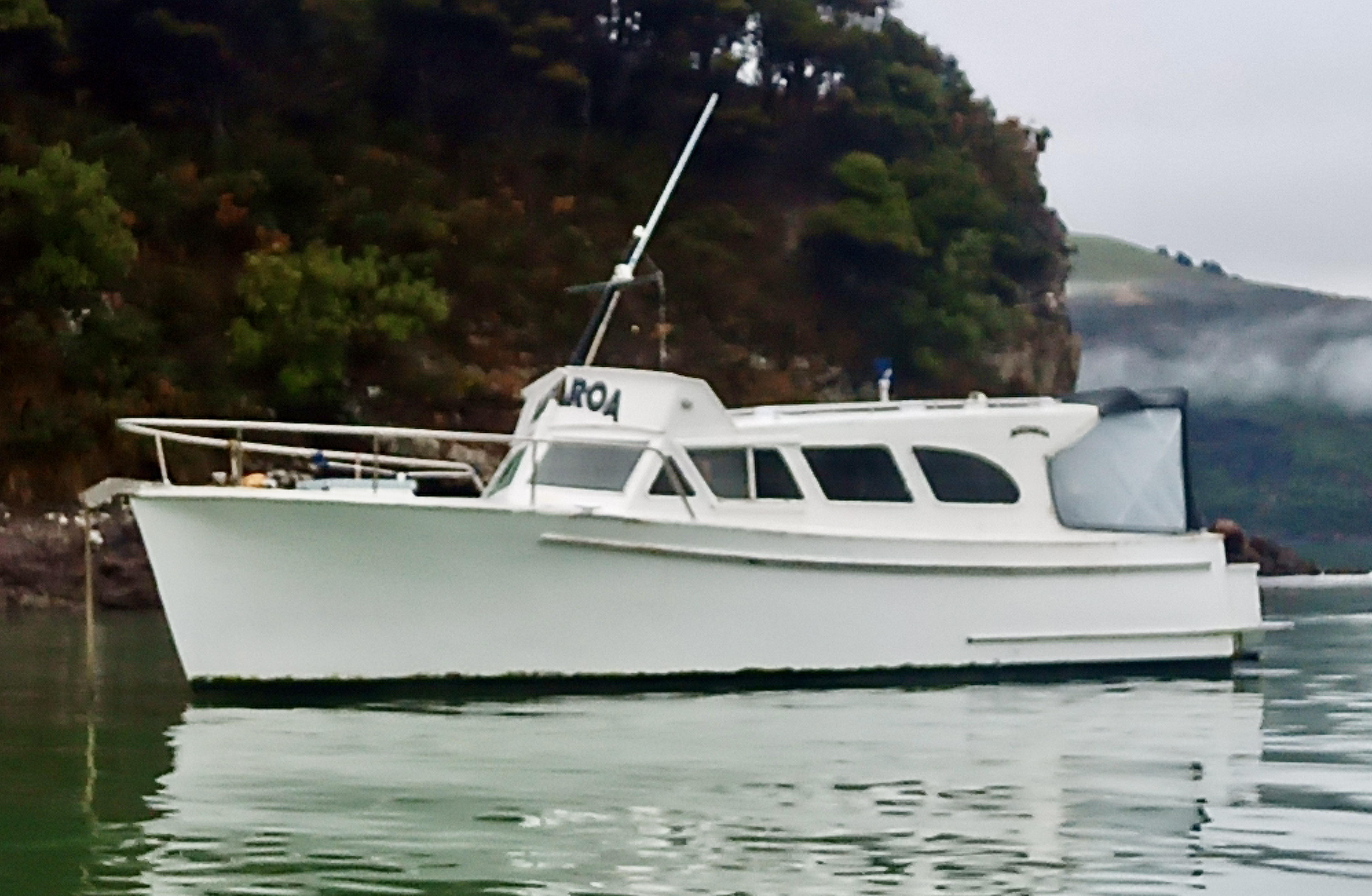 NGARUNUI was built in 1955 by Jim Young and started life, with a 1942 GM Detroit Marine Diesel engine (ex-war assets). It has now been fitted with a late model 200hp DOOSAN Diesel and has a Yanmar 20hp diesel auxiliary engine, with the prop for that engine mounted immediately above the main propeller.