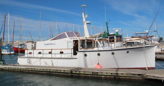 A typical example of Sam Fords work built c.1938. In the1940s & 50s she had 2 x 4 cyl Ford diesels with a single side exhaust on the starboard side with both engines going in to a single outlet. Photo taken c.1954 in Mansion House Bay, Kawau Island by Ken Ricketts. Photo quality poor as taken from a 8mm movie but had to include her as she is a lovely looking launch.