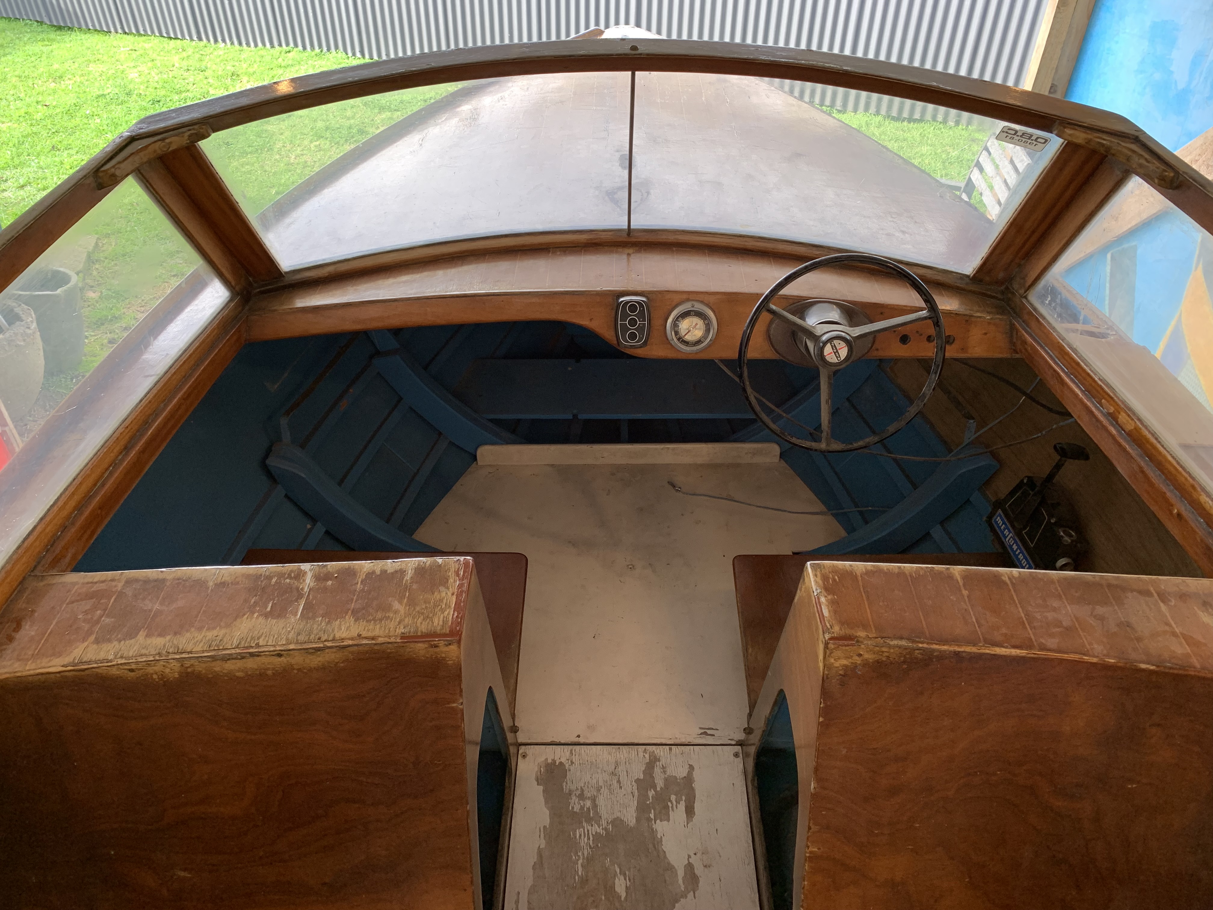 the 2 in line, 6 cyl, 4-cycle, 120hp Gray Marine engines, installed in 1960 (still there today) are a very rare model & type. They were manufactured during WWII for the American forces & could possibly be the only 2 in NZ. The owner believes her original owner Jack Butland in the later 1950’s probably reconditioned, or war surplus imported them.