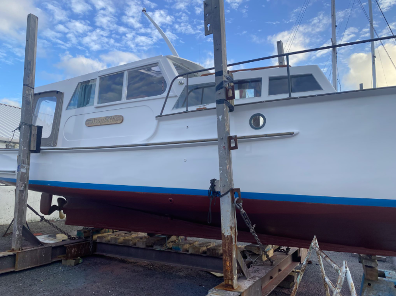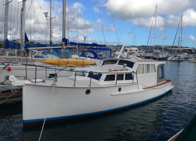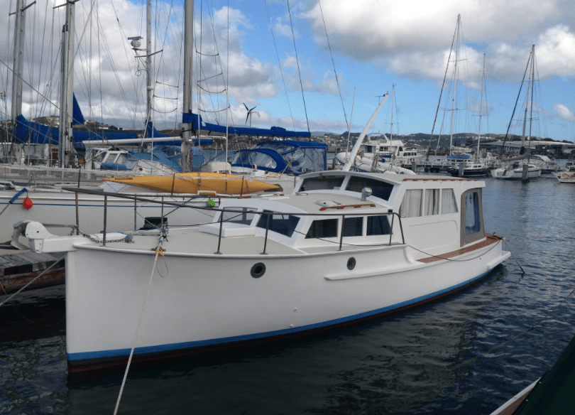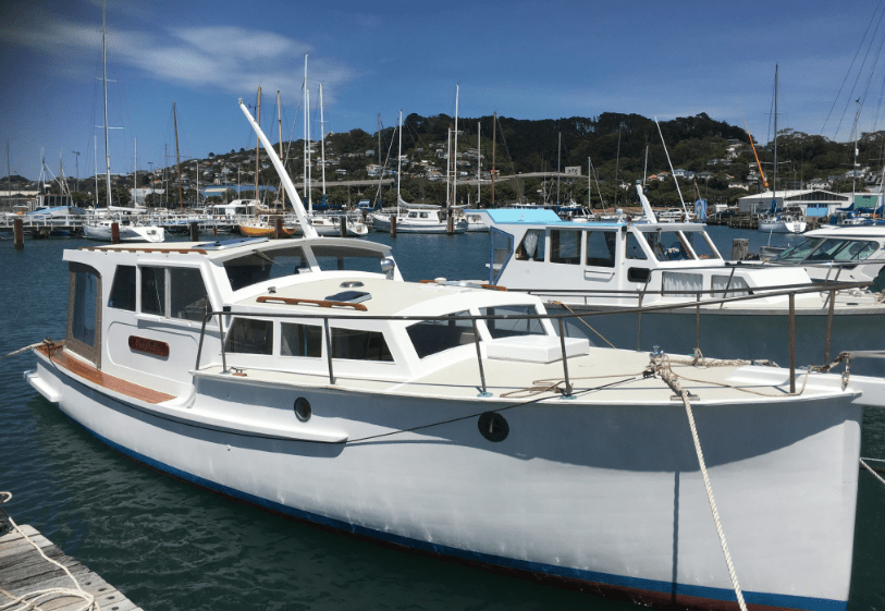 The classic launch – Maybelle recently appeared on tme, so thanks to the listing and Ian McDonald we get to have a good look at Maybelle. Her tme listing has her from the Collings and Bell stable and 32’ 10” in length. She is powered by a Ford Lees 6 cyl. diesel engine that gets her along at 7>8 knots. Appears to be very well maintained and appointed.