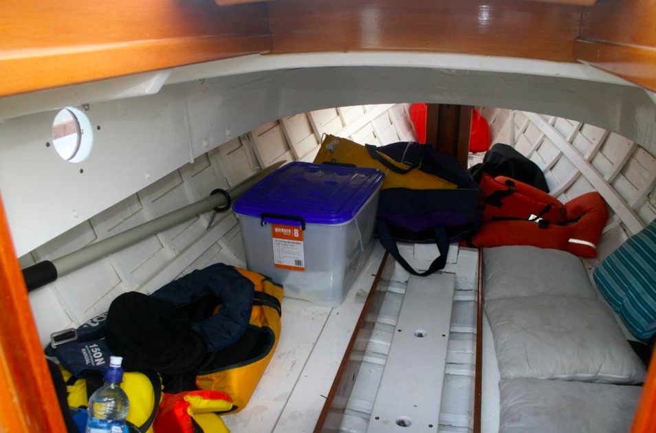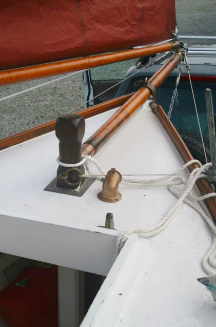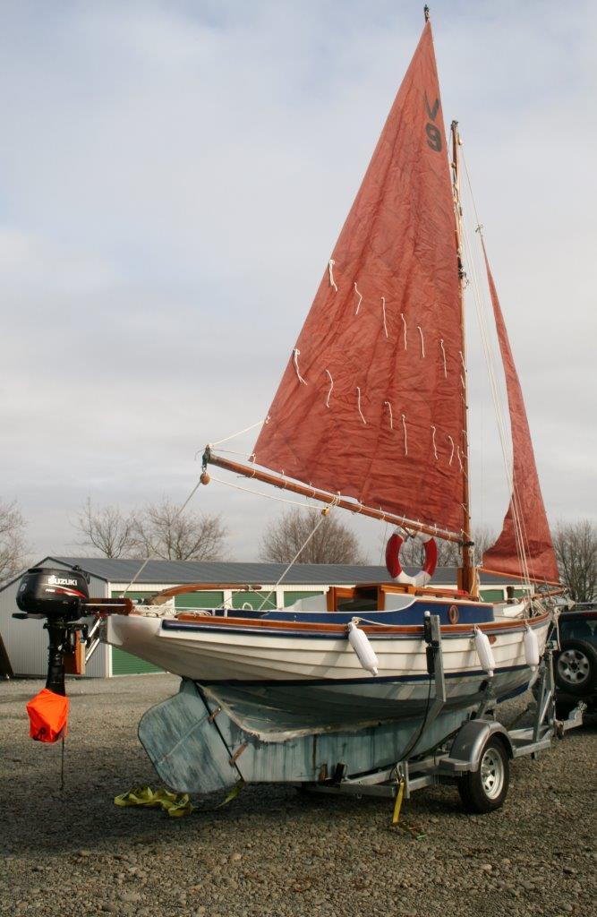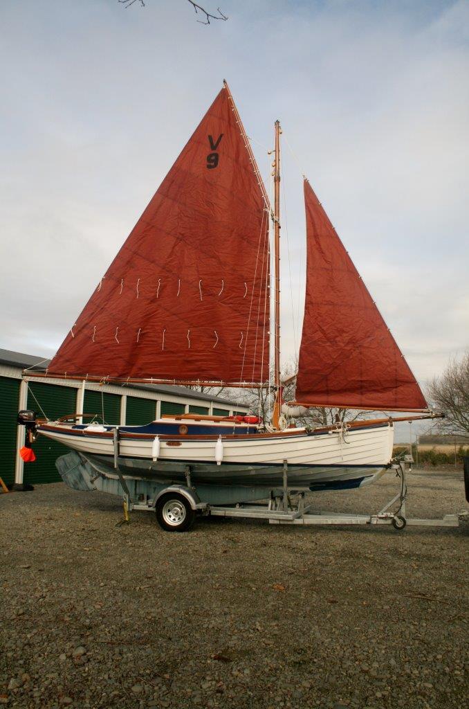 The registration number seems original (V9) – it is on an old cotton sail that came with her.