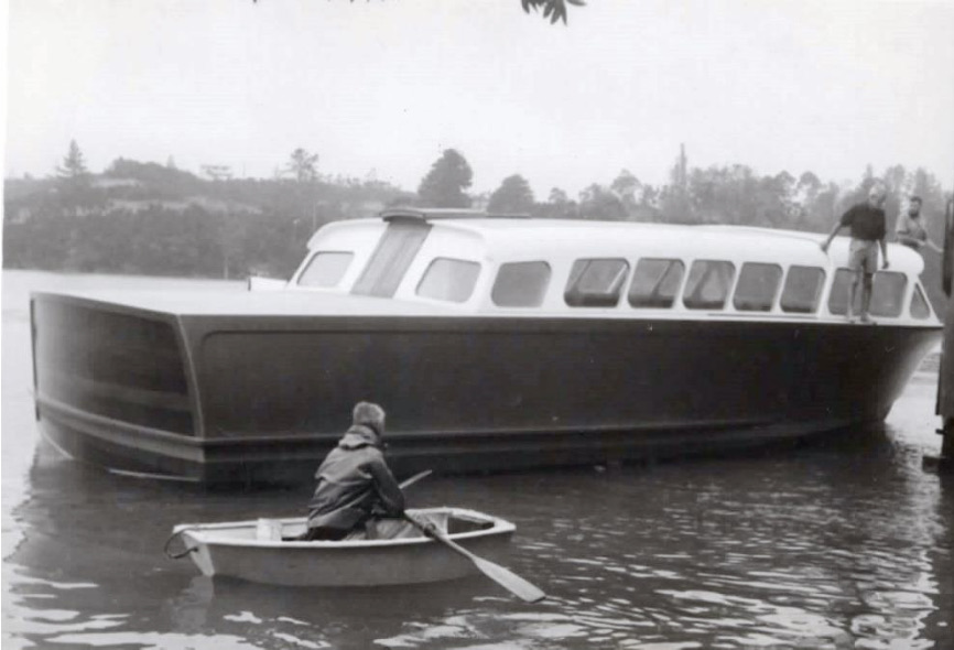 Purchased by Stephen A. Bell around 1973 /1974, she was moved to the premises of A & G Price at Beaumont Street in Auckland for the purpose of refit and installation of engines. The concept was “to fit the boat out for passenger service in extended river limits”. It was intended to “fit twin 8V71 GM Diesels driving through Walter Vee boxes; such a set up anticipating a speed approaching 25 knots in favourable conditions normally loaded”.