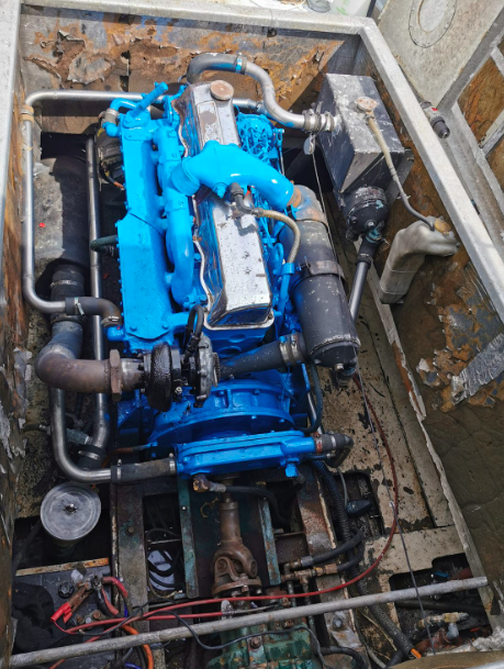 The engine was a UD/Nissan 2 Stroke V8 9.5L (this engine being a direct copy of the Detroit 8v71). The engine was positioned mid ships, which was not ideal as it took up a huge amount of room. The stern was quite broad in design which would have been better suited for the engine position, with a vee drive.