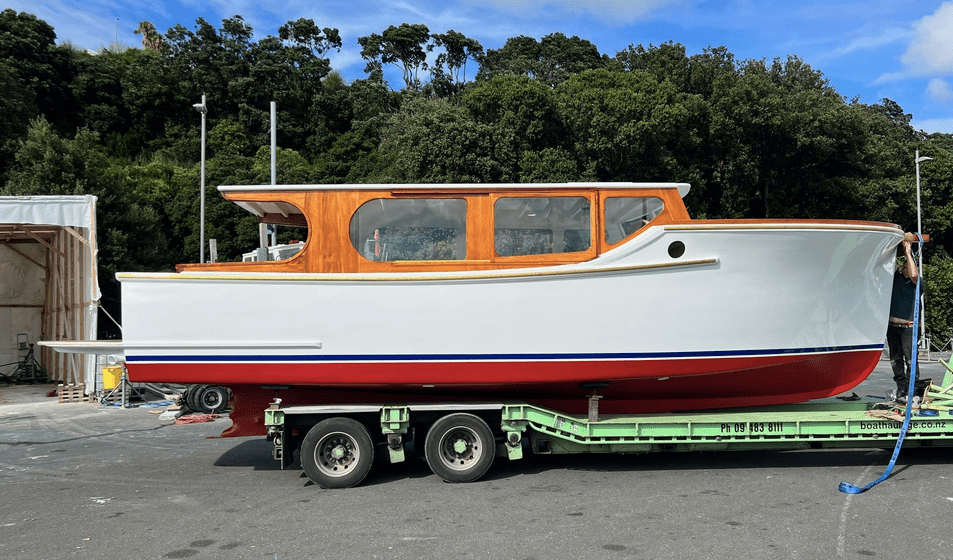 I spent some time there yesterday helping with the relaunch of Angus Rogers 1968 Bailey & Son built launch – CENTAURUS that had been out at the Slipway Milford railway slip for some TLC and a JPPJ (Jason Prew Paint Job) – a minor opps – flat batteries………. meant a delayed start, so plenty of time to pull the camera (phone) out. A 3.5m tide equalled a lot of activity at the Slipway and the adjacent Milford Cruising Club hard stand.