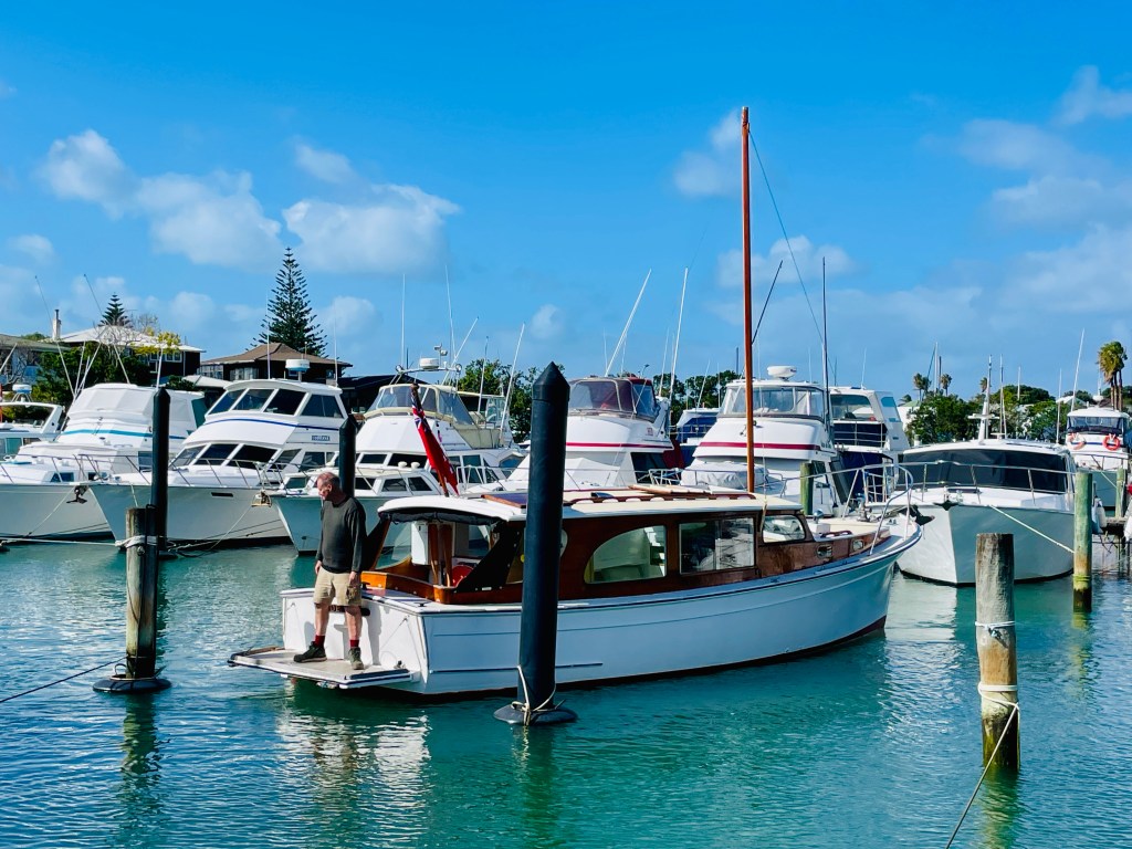 While at the yard I caught up with 3 generations of the Brooke family working on the family launch – LINDA. Robert came over to inspect the work on NGAIO and even though in the photo above it looks like Paul Tingey is having a chat with the headmaster – Robert had high praise for Paul’s work.✔️
