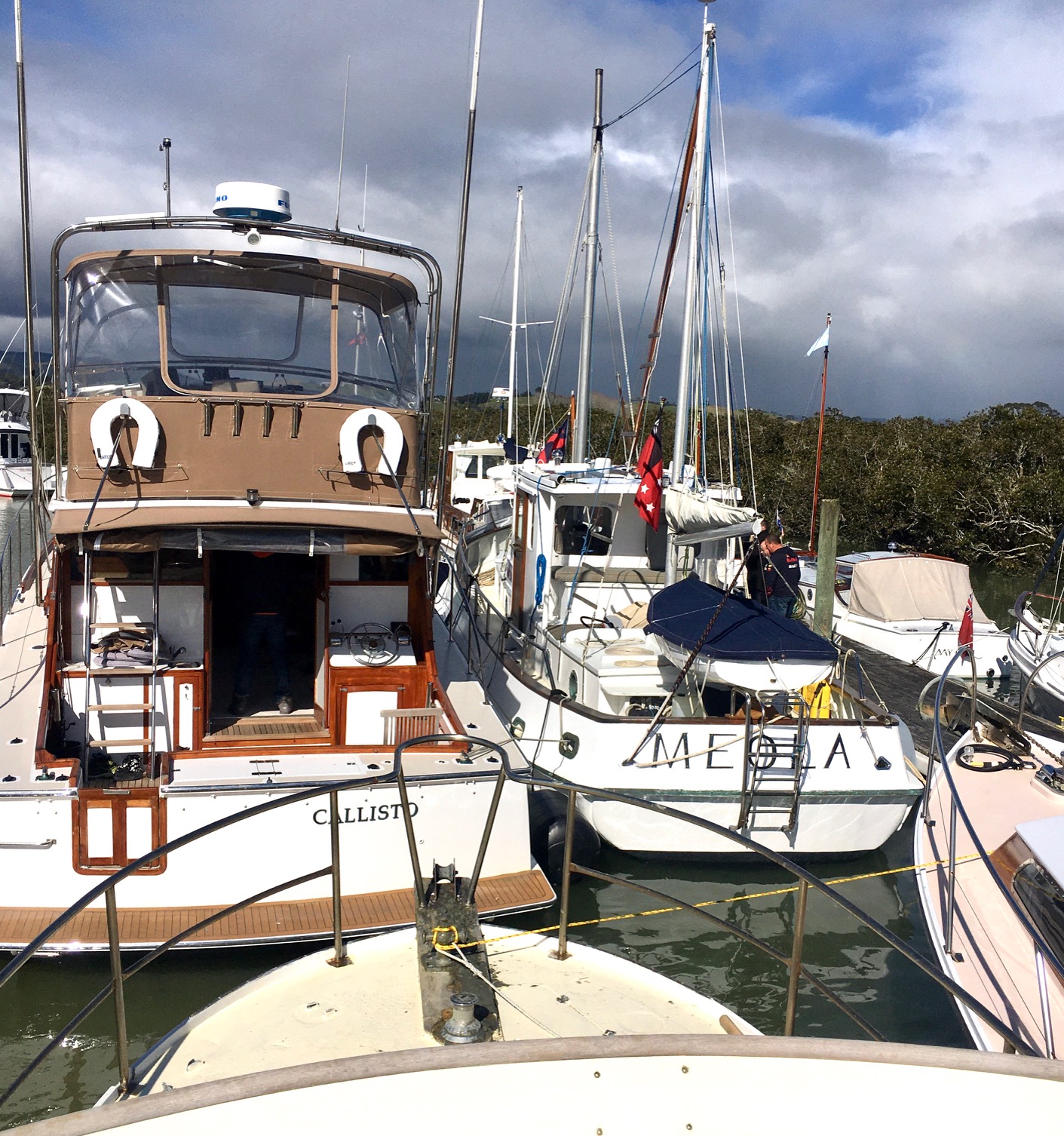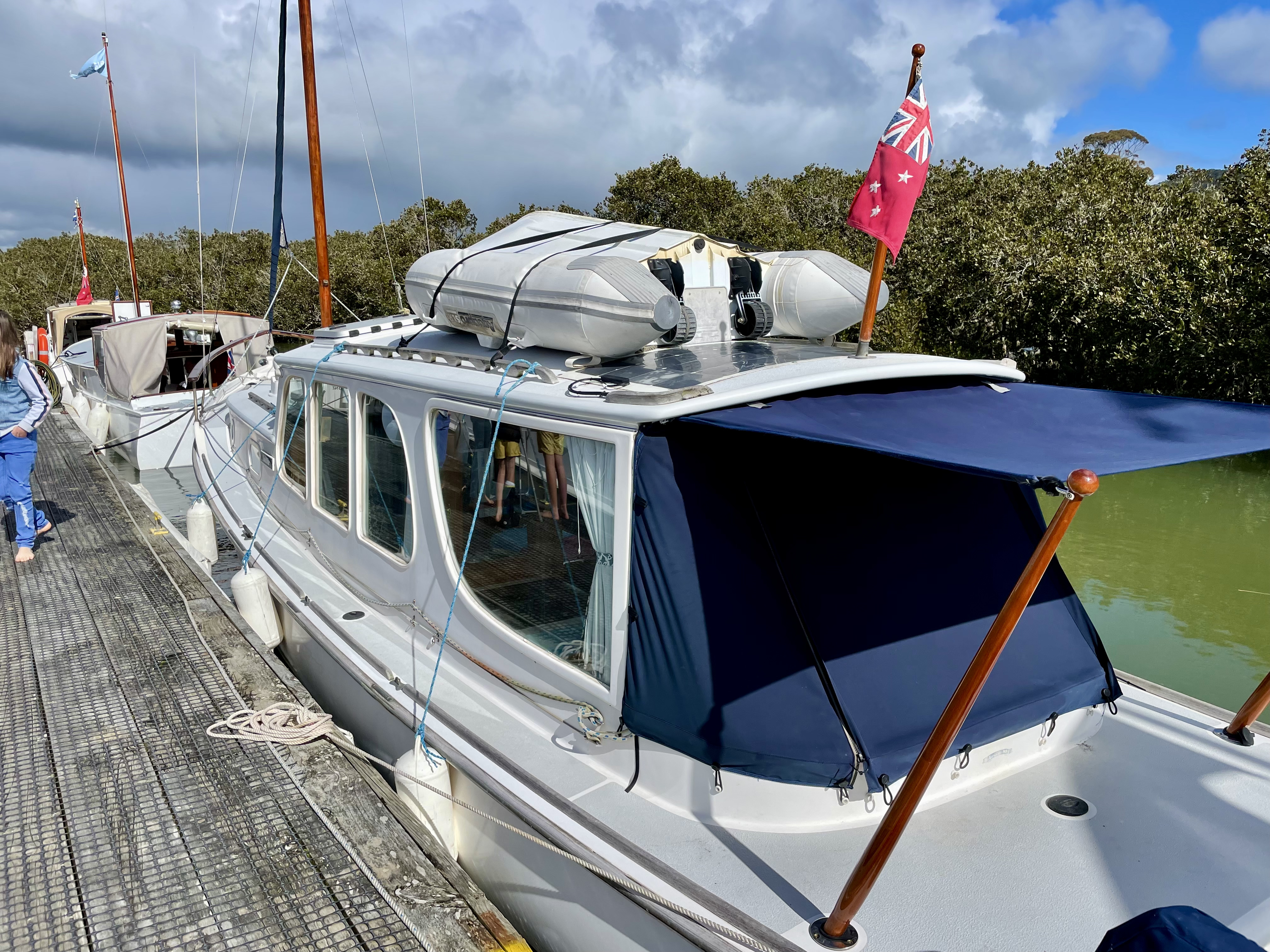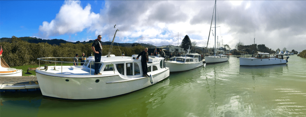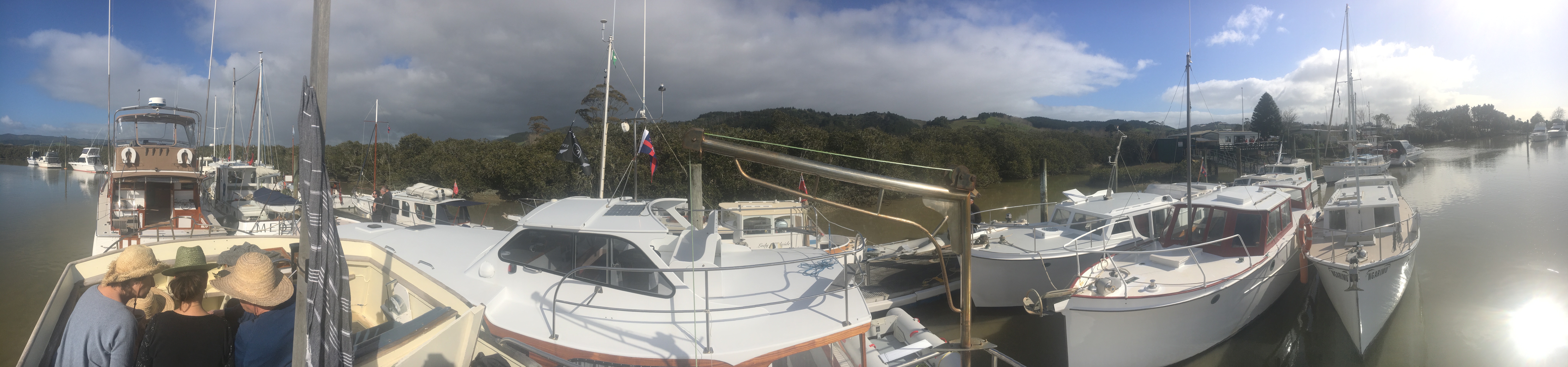 Just back from a really great woody weekend. The CYA hosted a gathering at Fairway Bay Marina, Gulf Harbour that saw the boats all rafted up in the ‘gated’ upper lagoon. We were greeted by Grant the marina manager in his tender that made berthing easy for those without bow-thruster ;-). In fact Grant was the perfect host & made the weekend extra special.