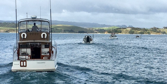 Boats participating in the cruise were – Allergy, Awariki, Lady Clare, Lady Ellen, Merita, Mokoia, My Girl, Ngaio, Ngarimu, Raindance, Smooth Operator, Trinidad, Waikaro.