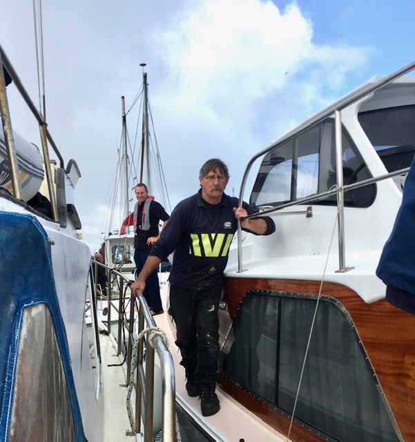 The brand new Northerner struck Bollen’s Rock while racing through Tiri Channel. Her first race! Max was her skipper for the day. She was raised and repaired like new. Capt Warwick Dunsford, Owner Boyd Hargrave with the binoculars. (more photos & press clippings below)