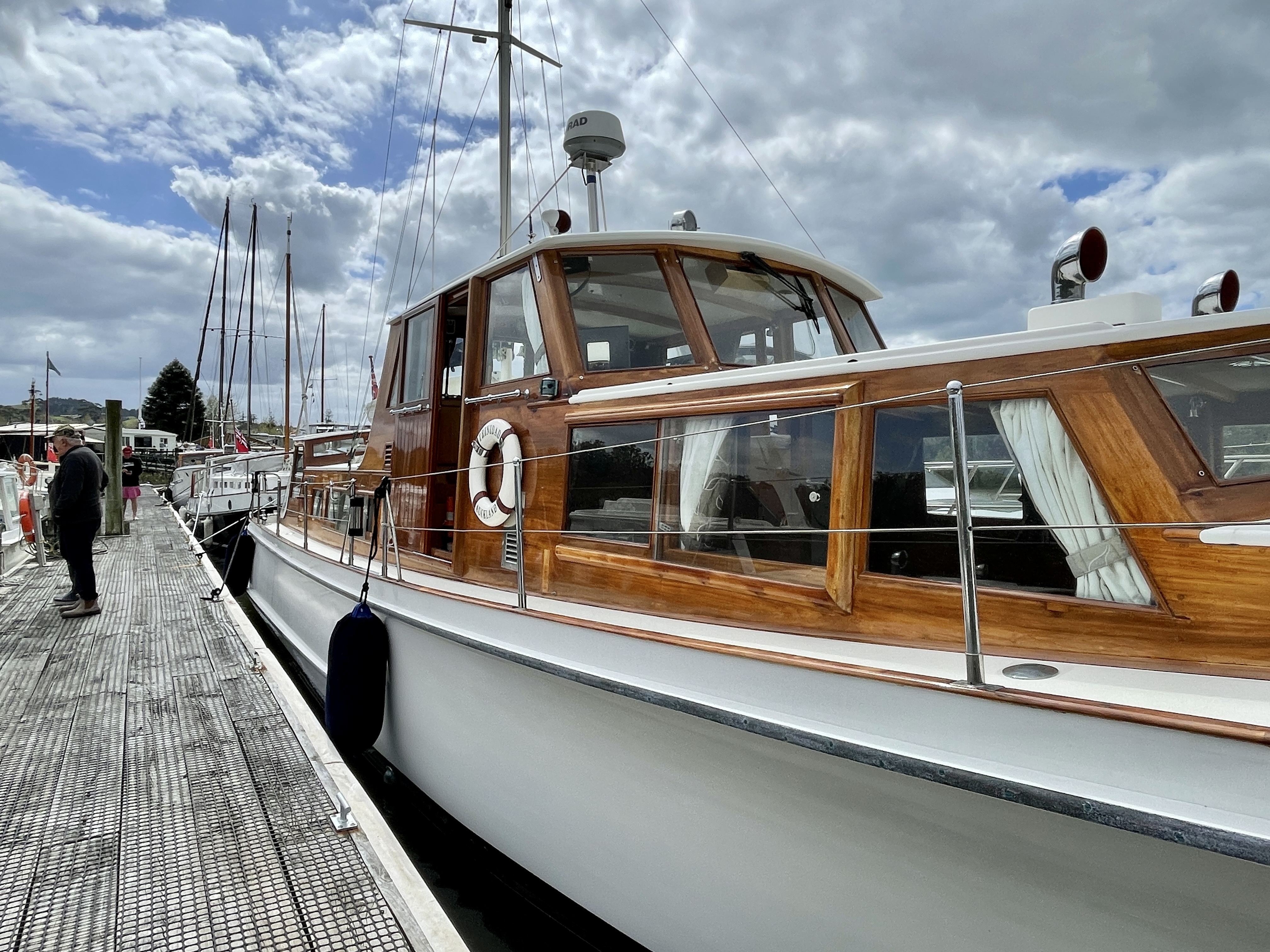 Todays woody – the yacht MOKOIA (spelling?) was spotted by Barbara Cooke during the week in the Bay of Islands.