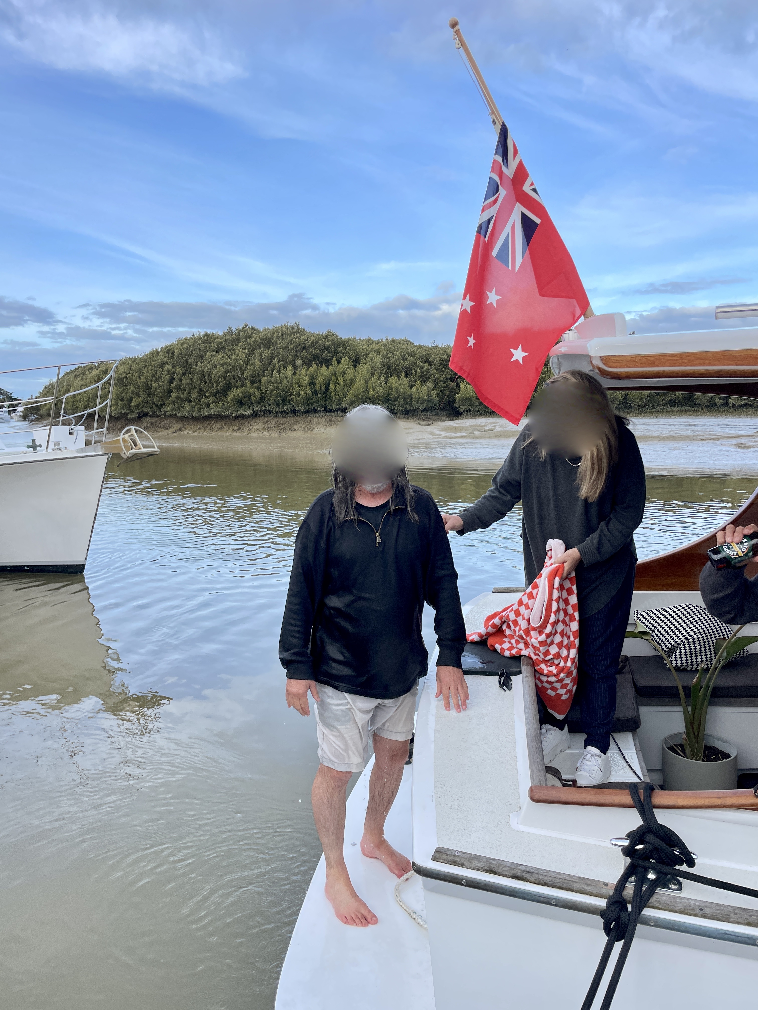 By now regular WW readers will be familiar with the format of the weekend – we meet off the entrance to the Wairoa River and then weave our way up river to the Clevedon Cruising Club. The flotilla berths at the CCC dock, in front of their clubhouse, then we ‘open’ the boats for club member to view. Happy hour tends to start early up the river, and this weekend it was even earlier. Later in the day we retire to the clubrooms for a shared BBQ dinner, and live music.