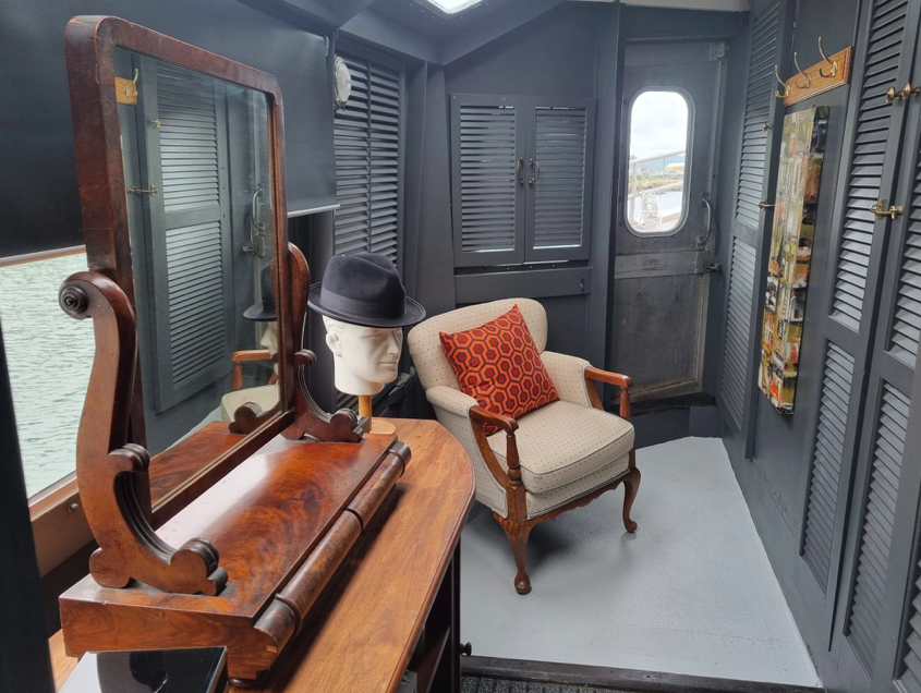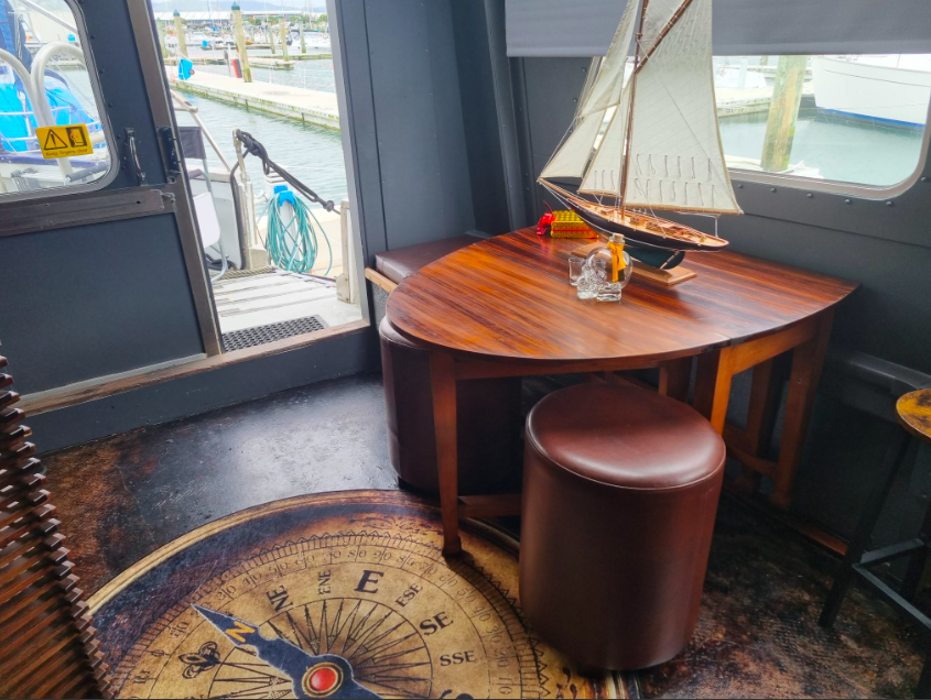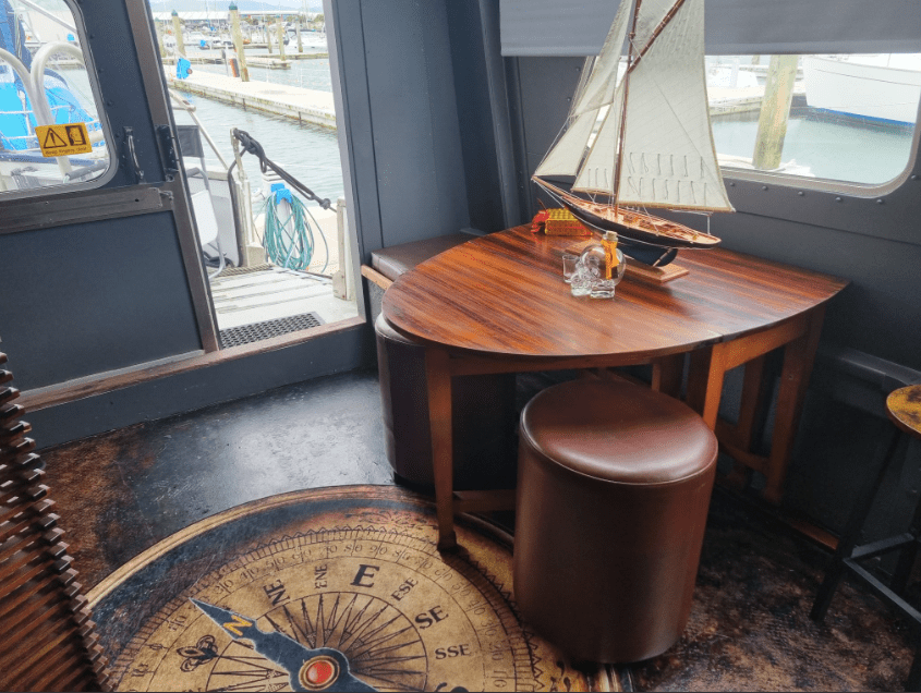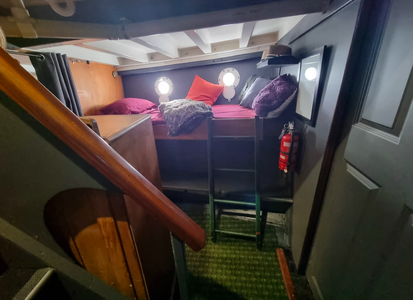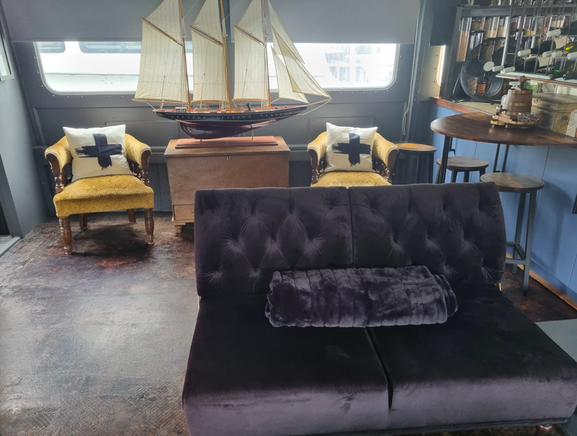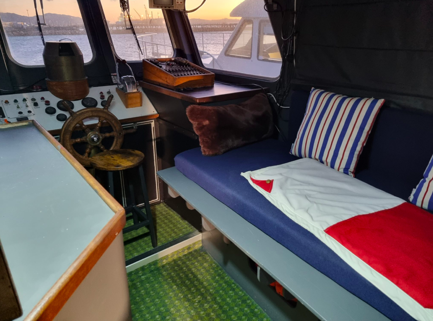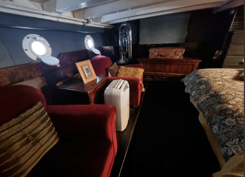 The listing states that she was built by someone named Robb in 1956 and is made of wood, thats all we know because the ad is all about it being the best live aboard available. Well woodys given the sellers decorating approach thats very subjective, but they do say that ‘furnishing can be separately negotiated’ 🙂