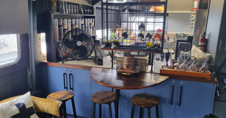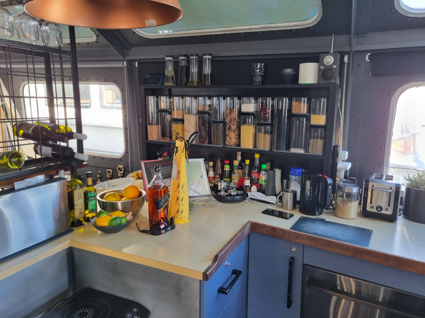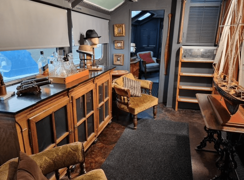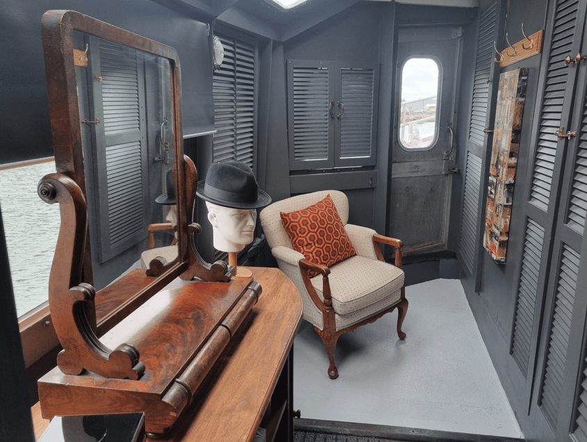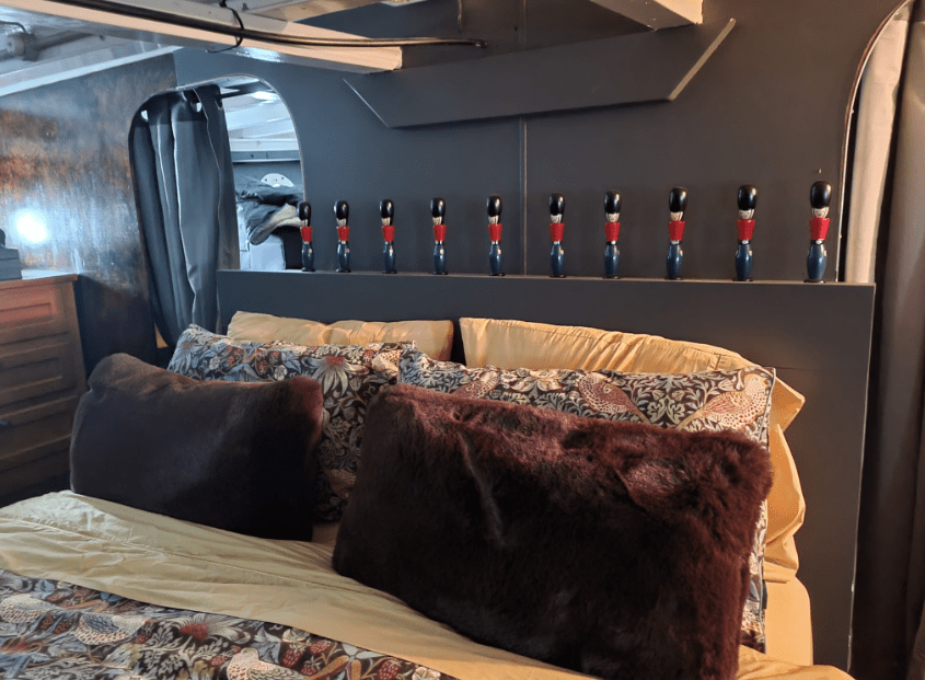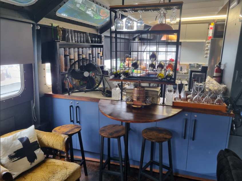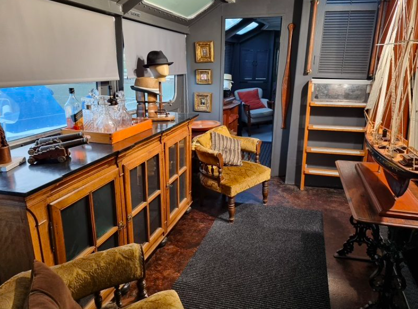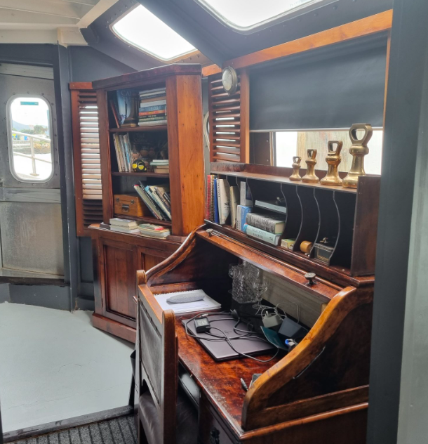 The listing states that she was built by someone named Robb in 1956 and is made of wood, thats all we know because the ad is all about it being the best live aboard available. Well woodys given the sellers decorating approach thats very subjective, but they do say that ‘furnishing can be separately negotiated’ 🙂