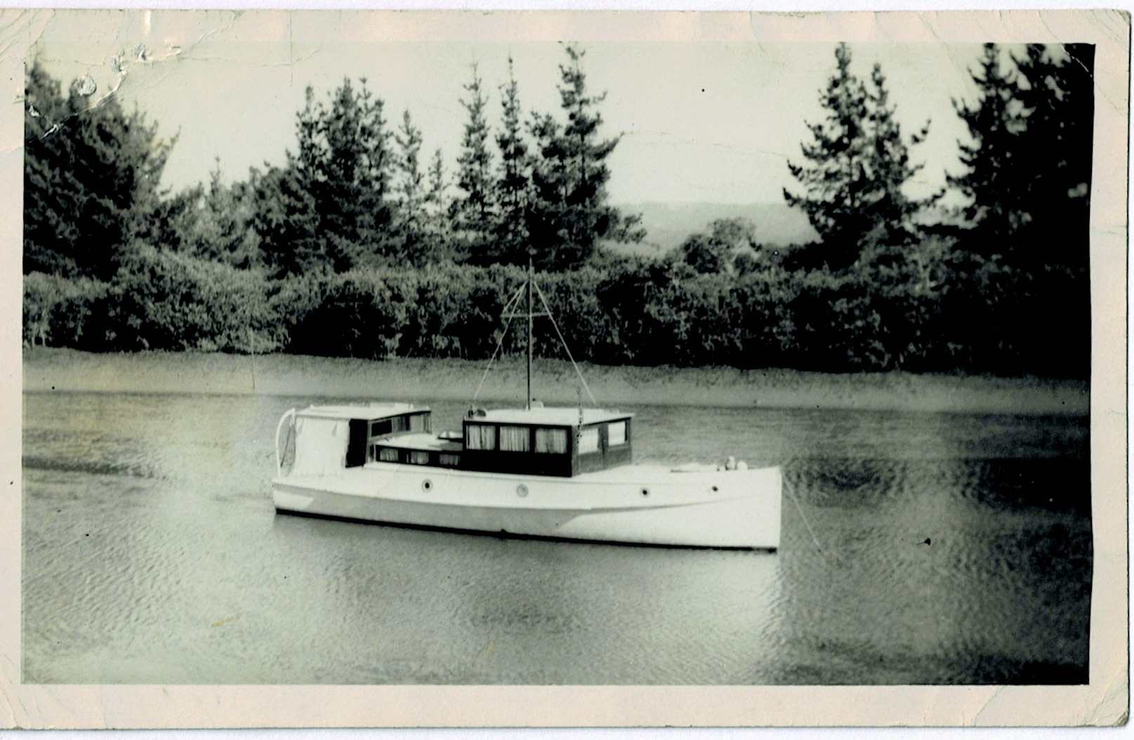 After yesterdays tidal wave of photos from the weekends Woody cruise, we come back to earth with the above b/w photo of a launch. There is a name on the rear of the photo print, but I’ll leave the reveal until after you all get a chance to engage the grey matter. I can say that its a mystery to me and to the best of my knowledge hasn’t been on WW b4. Photo comes to use via the Andrew Donavan collection