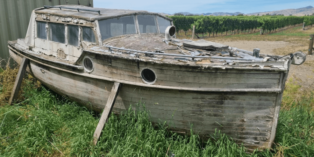 Looking at the photos the potentially most valuable items – the portholes – have been removed, combine this the the boats location – Blenheim, Marlborough. Things do not look too rosy.