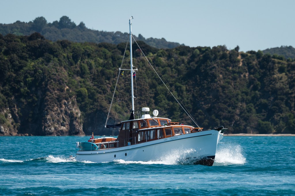 The 1947 Colin Wild designed and built launch – Lady Crossley is currently tucked up in the ‘Nautique Boat Yard’ shed at Hobsonville Marina for some TLC.
