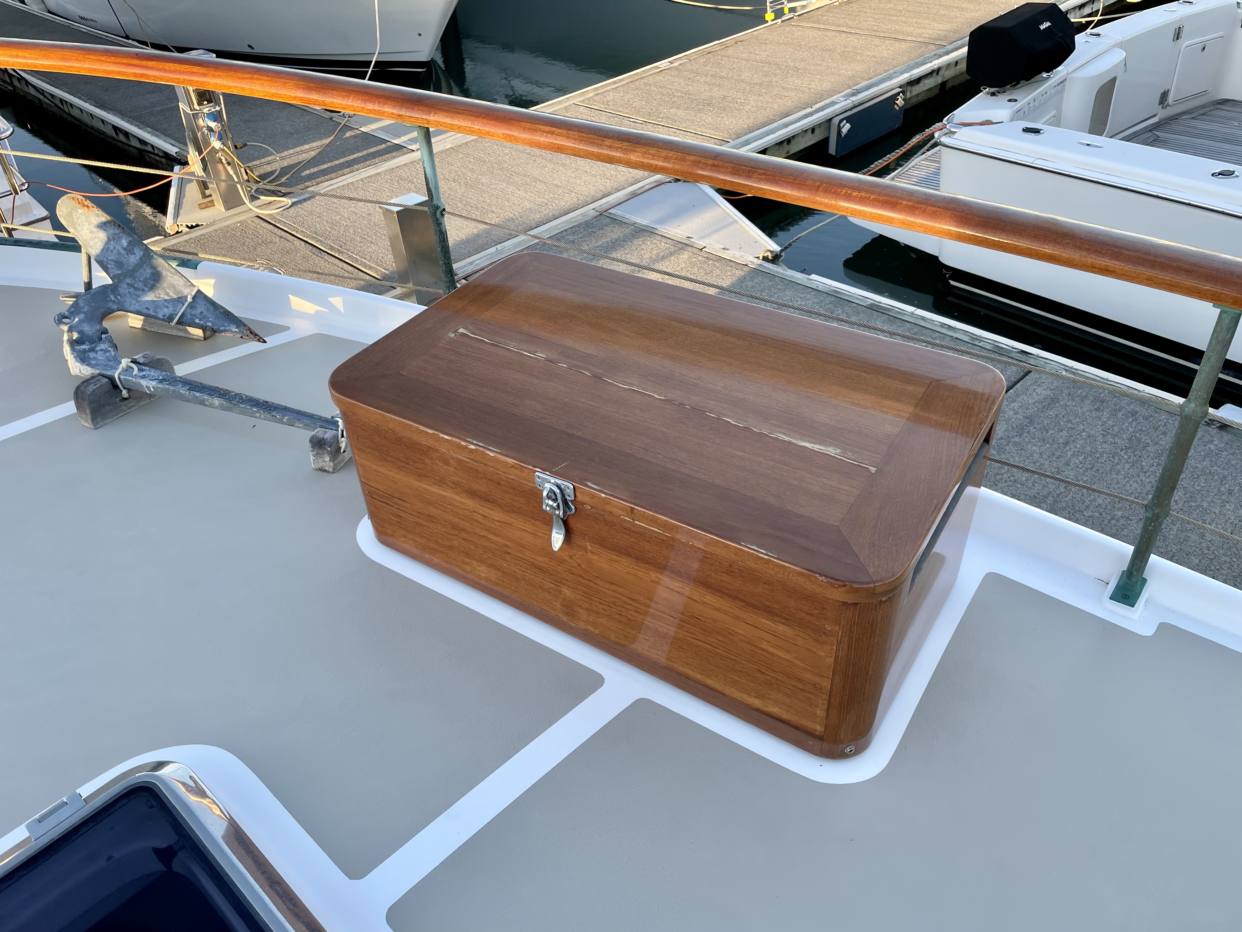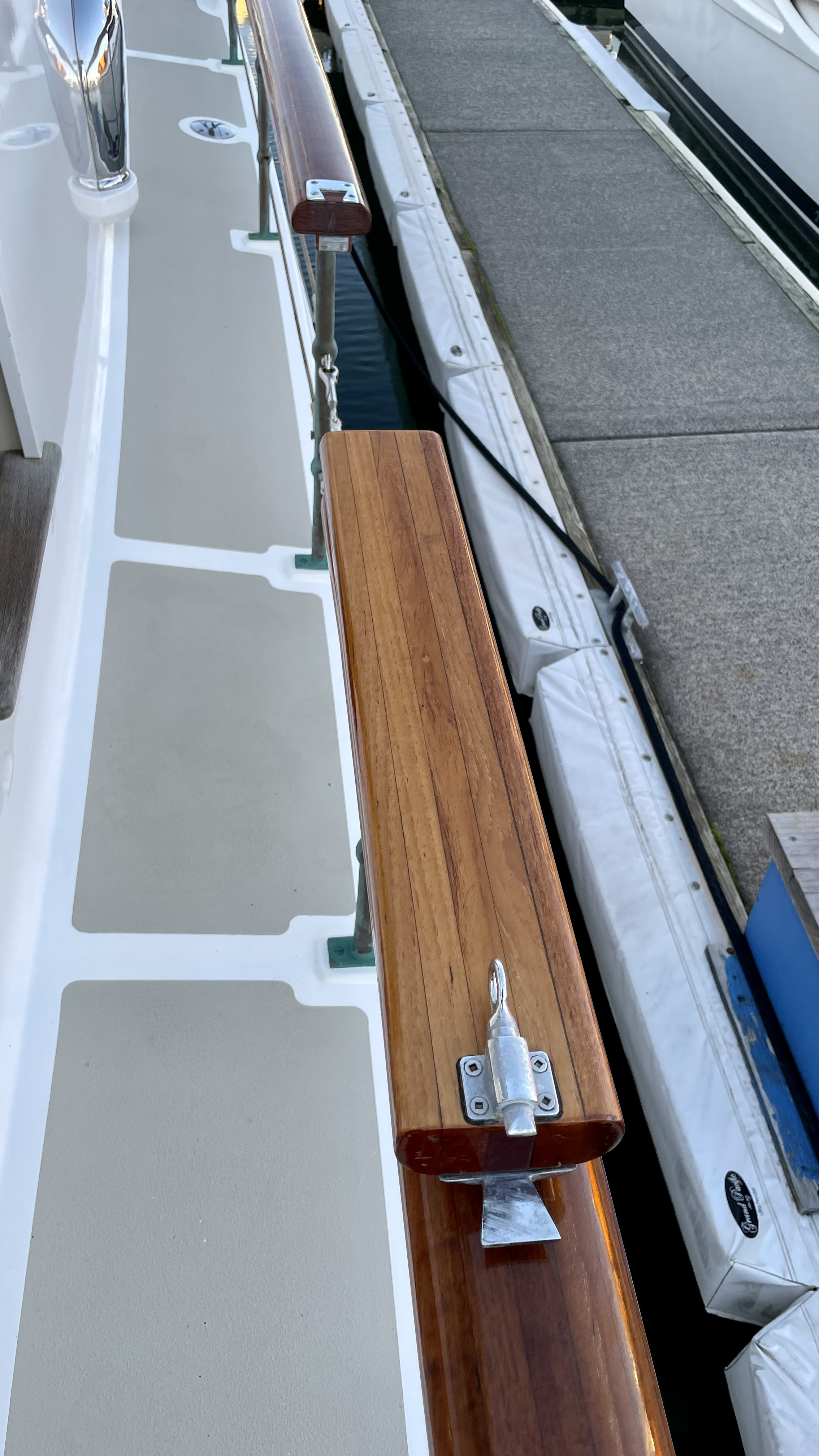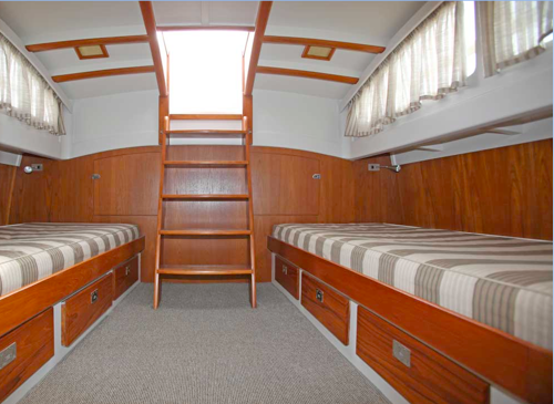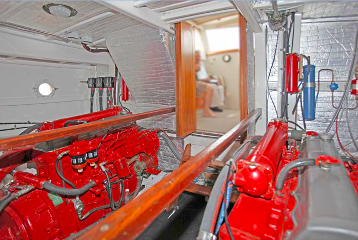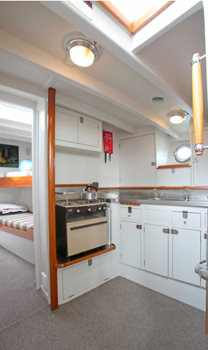 She is a very well built ship being triple skin kauri – 2 – 6’x1/2” diagonal planks and 1 – 6’x1” longitudinal plank, with 3” bronze rivets.Power comes from twin 1985, 120hp Ford diesels, both rebuilt in the last 3 years, including gearboxes. Professional bare wood anti-foul in 2020 and full repaint in late 2014 – she presents as new. The mix of painted surfaces and varnished trim is perfect. As always – click on photos to enlarge.