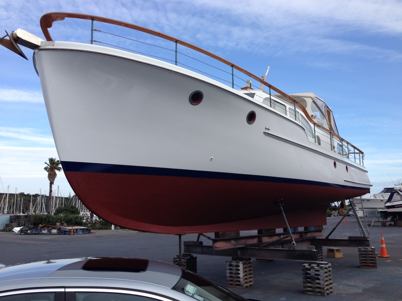 Her ‘newish’ owners returned Ngaro to the water last week at Gulf Harbour after a new coat of paint, top & bottom. They only had good things to say about Mike Vitali & his team at One10 Painters, the finished job looks very sharp.
