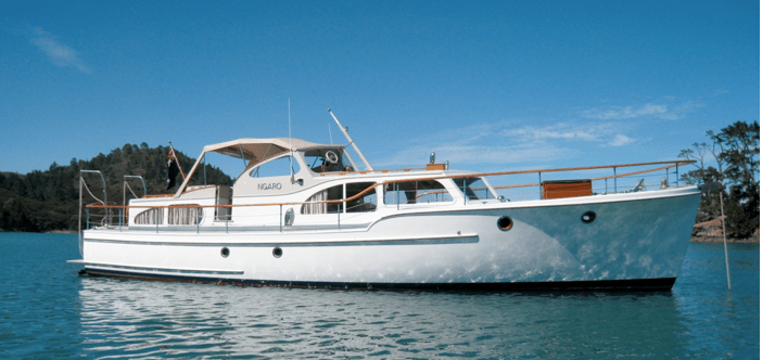 Ngaro was designed /built in 1952 & launched in 1953 by Roy Lidgard (Lidgard Ship Yard) in Smelting House Bay Kawau Island. She is 14.78m LOA / 3.88m beam & draws 1.4m.. She is a solid old girl with double diagonal 1/2″ kauri & 1″ longitudinal planks & bronze riveted.  Powered by twin Ford 120hp Lemman’s that were installed in 1965.