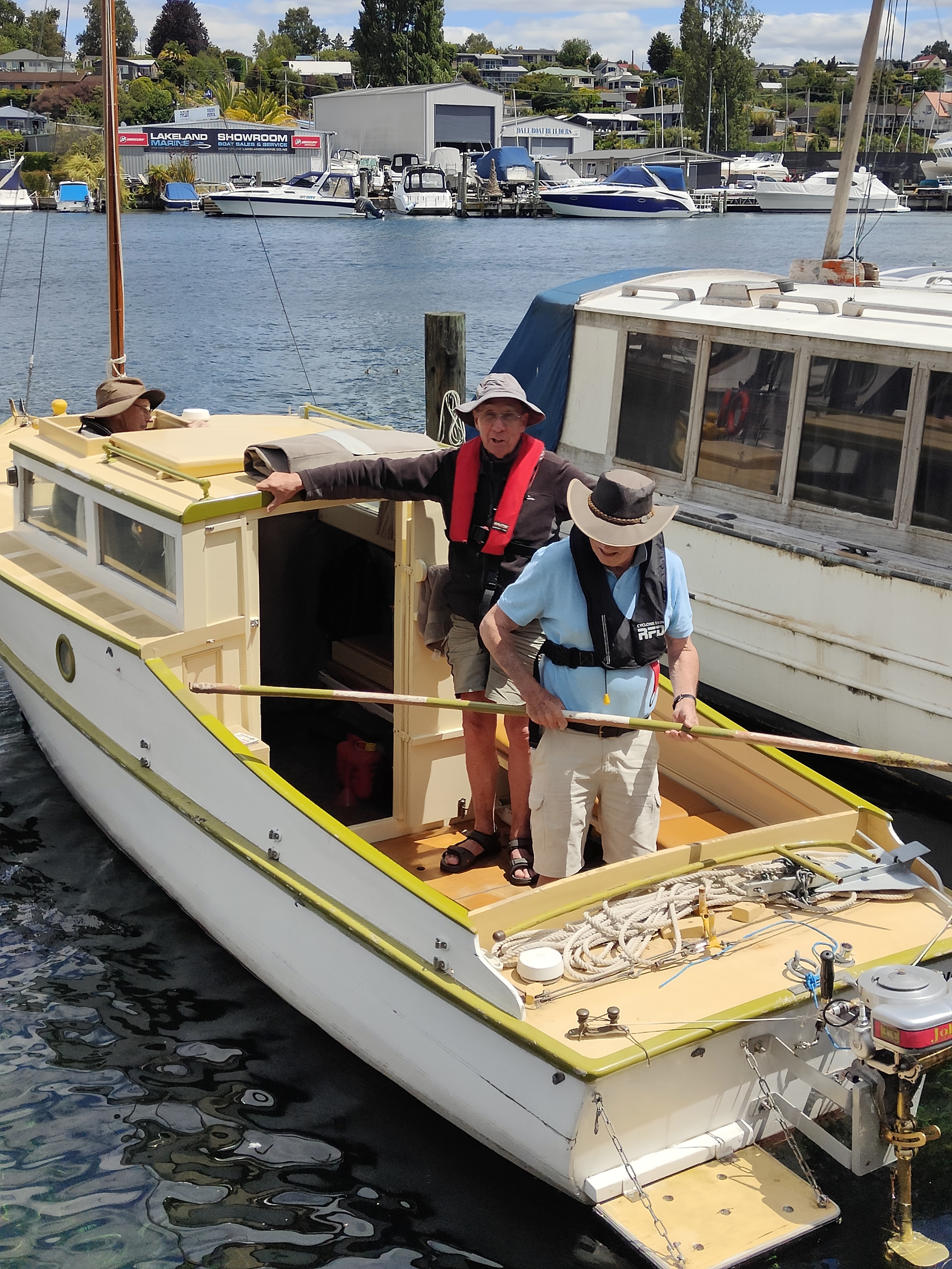Todays woody story is big on the feel good scale. During the week Taupo woody Shawn Vennell sent me todays photos of the Drake brothers, in the top photo L>R we have – Micheal – Paul and good friend Monte Jones. The Drake ‘boys’ are a walking encyclopaedia of boating on the central north island lakes and are the WW go-to for any classic wooden boating questions. I have been lucky to meet them at the annual Lake Rotoiti Classic & Wooden Boat Parades and have always admired how they present their craft. Genetics is a wonderful thing, I’m told their father was also a legend on the lake. I’m too polite to ask but the combined ages of the brothers would equal an impressive number of years classic boating.