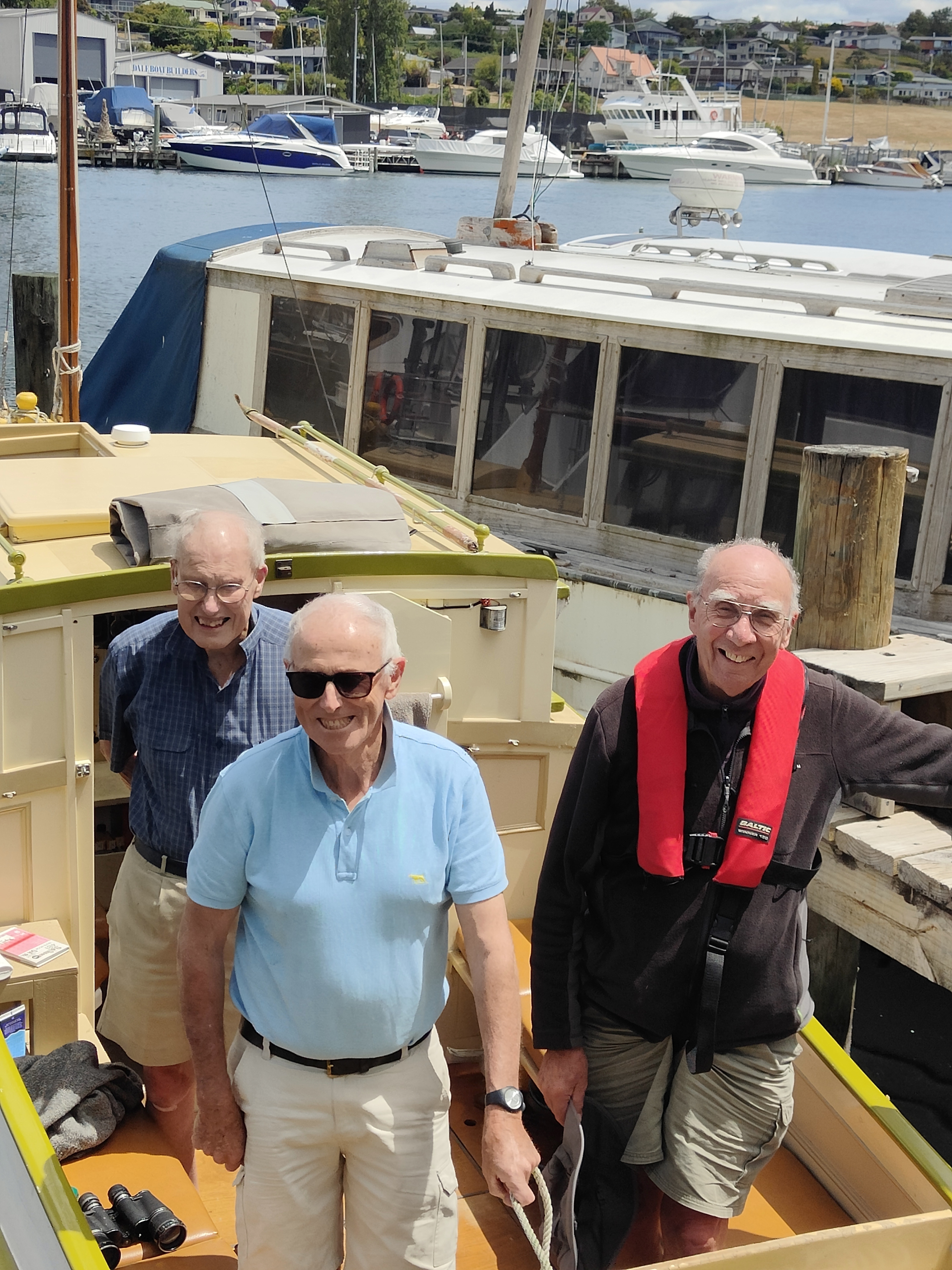 The occasion in the photo was the trial run of Monte’s recently restored 100 year old 2 hp twin cylinder Johnson outboard. It ran perfectly and pushed SIR FRANCIS along at a couple of knots.
