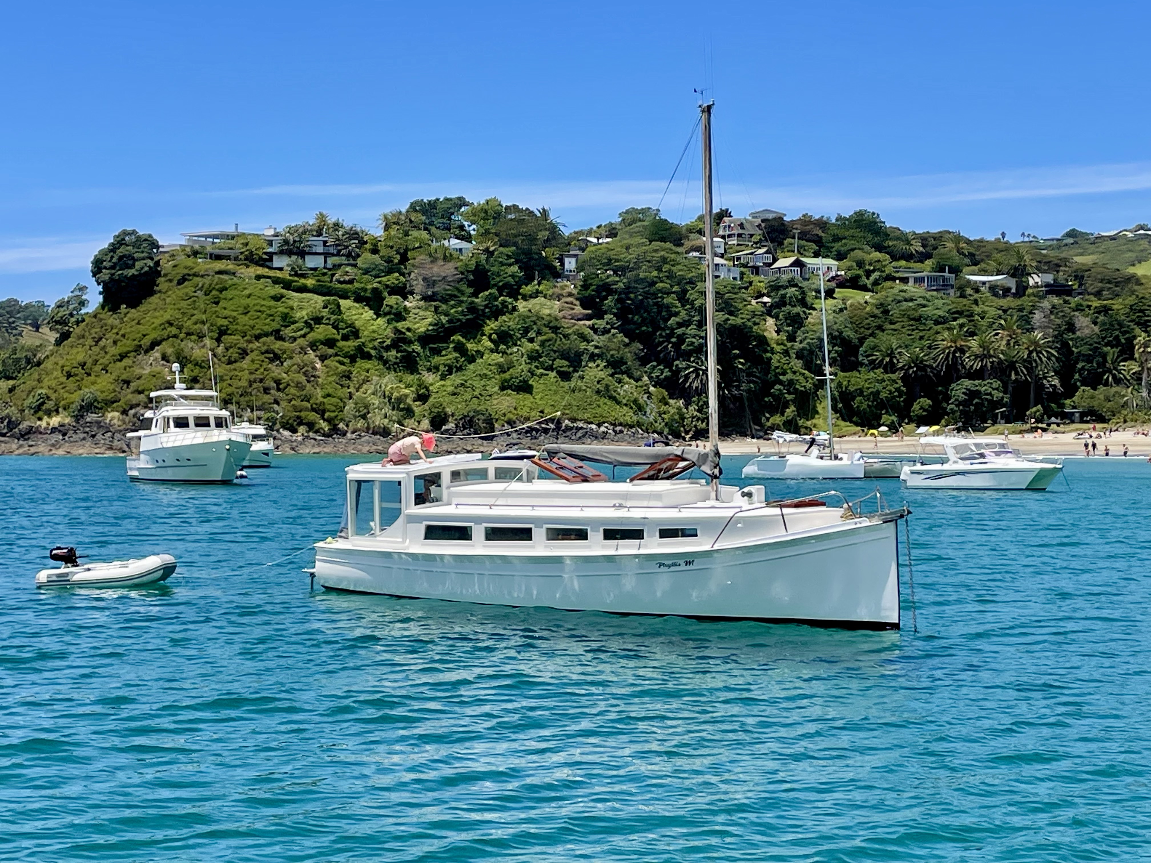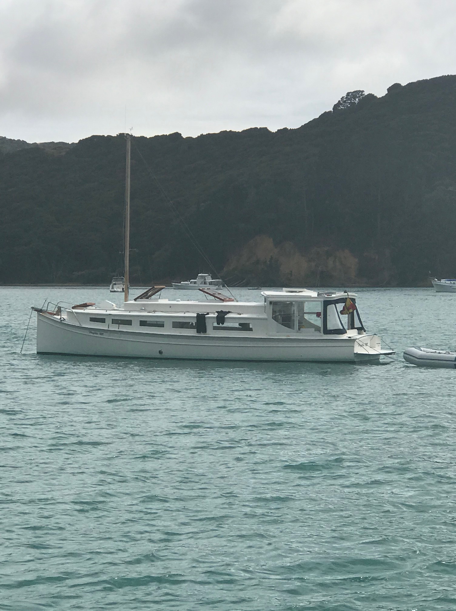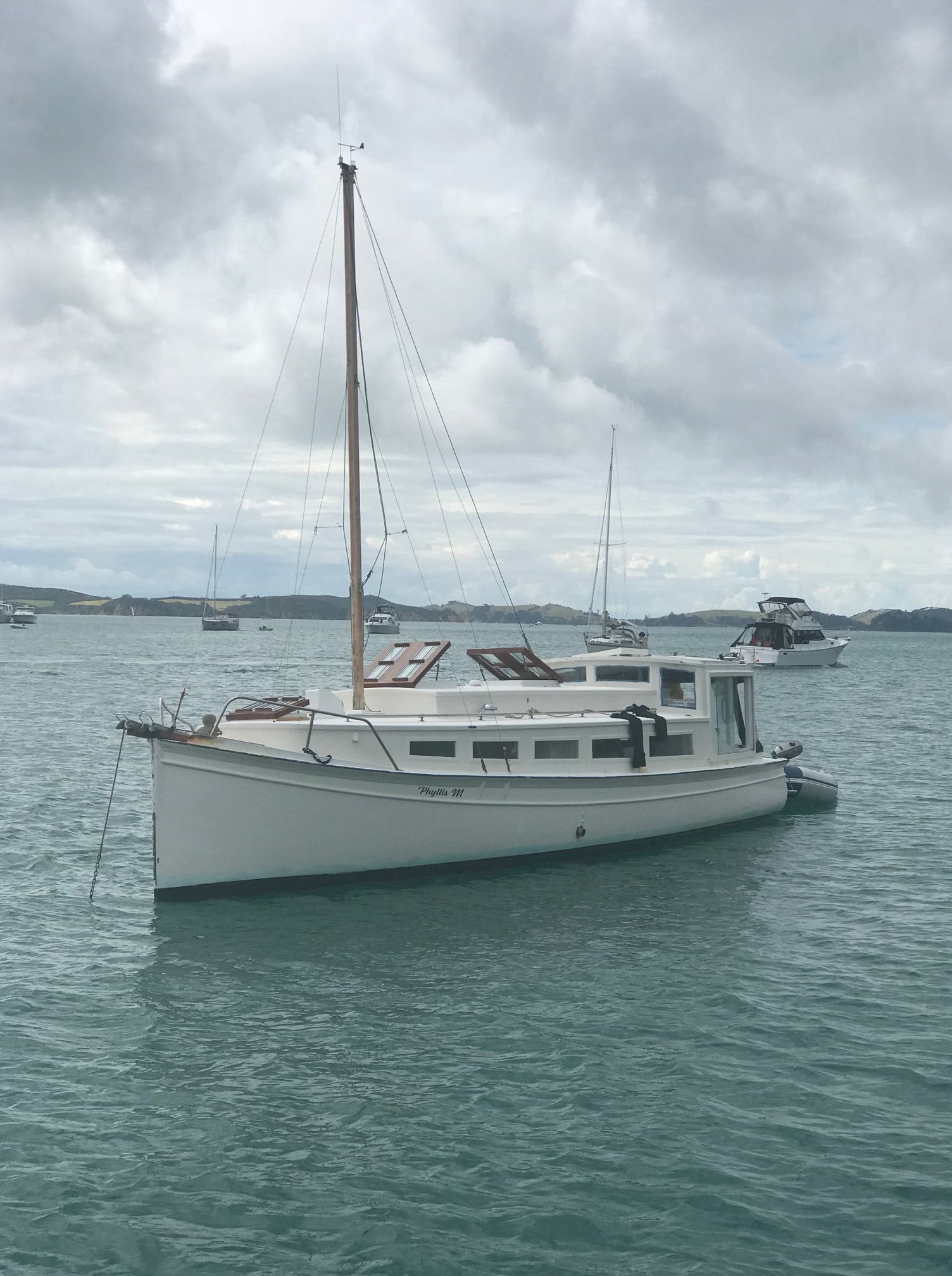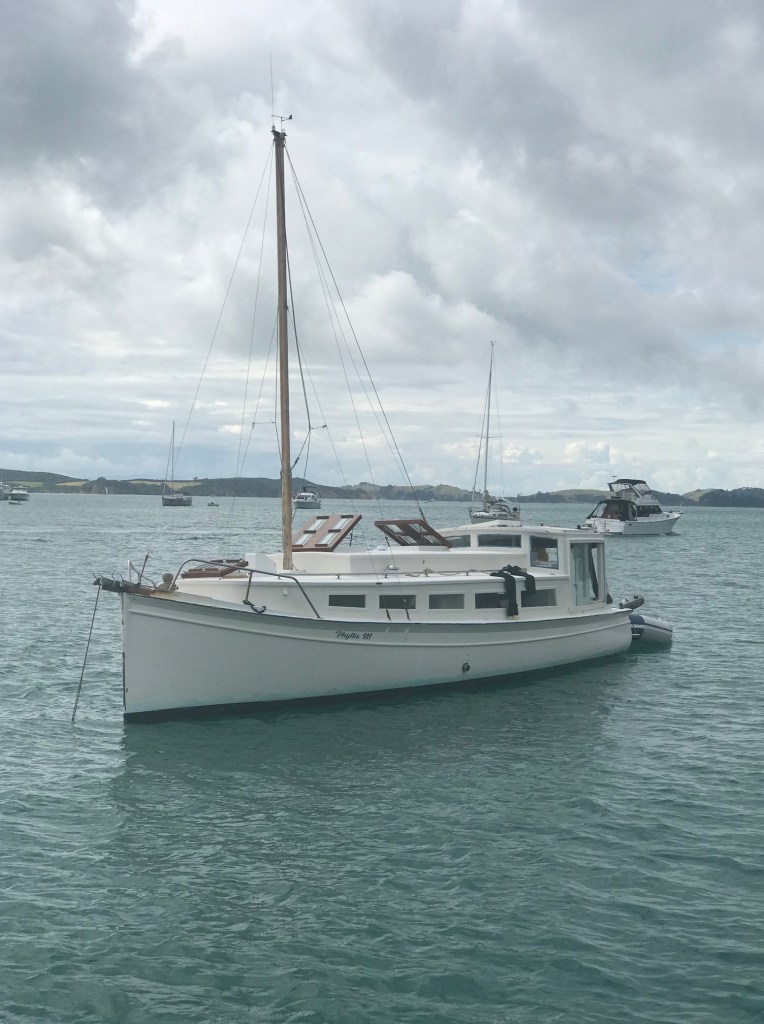 The photo above of Phyllis M was taken recently in Smoke House Bay, Great Barrier Island. She would have to be a finalist in the Husqvarna Chainsaw Boat of the Year Awards 🙂
