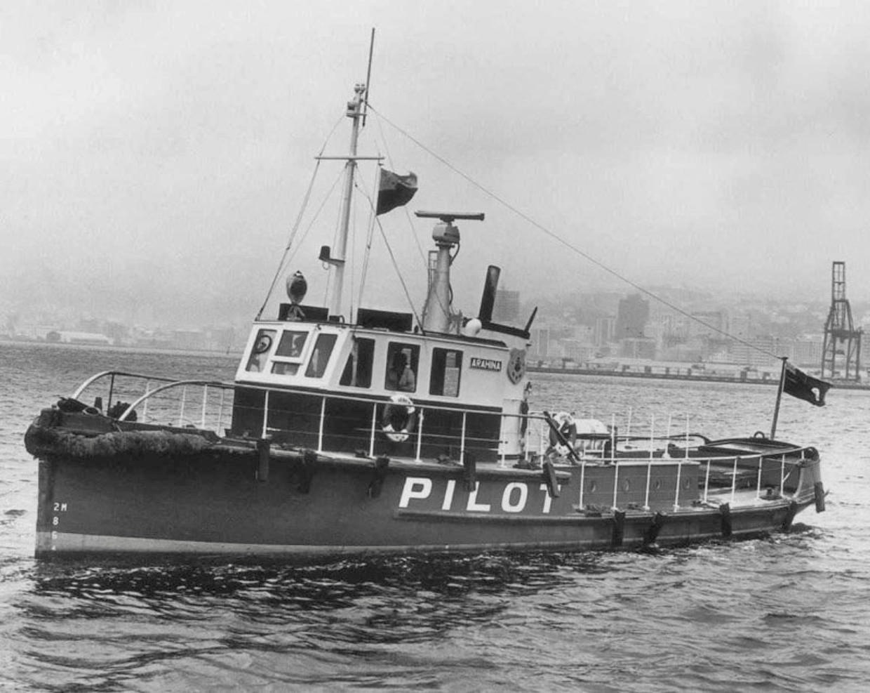 She was a seaworthy vessel but tended to broach severely in a following sea, as was often experienced off Pencarrow in a southerly”. On one such occasion when she picked up speed on the face of a large sea astern, her stern picked up and over she went, throwing her Launchmaster into the corner of the wheelhouse as he tried but failed to keep her on course. The pilot and engineer eyed each other as they made for the open wheelhouse door. But ARAHINA recovered herself and all was well enough.