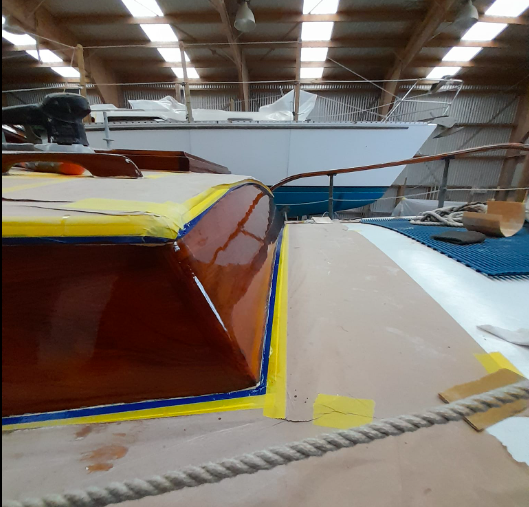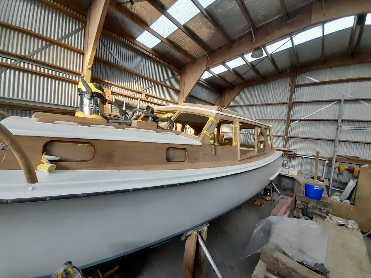 Update – Pirimanu back in the water, all windows replaced with new teak beading, all new varnish inside and out (14 coats of alwood gloss) inside cabin repainted, new electronics solar and bilge pumps, new gear box and refurbished engine. (Photos and words ex Blair Boats fb.
