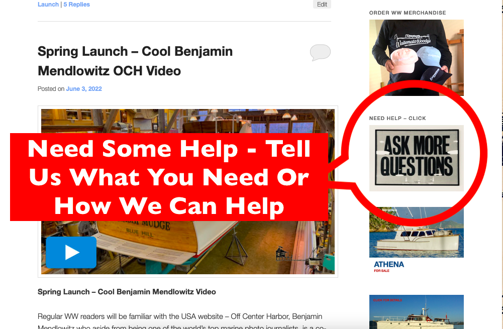 THANK YOU & A CALL FOR HELP As always WW would be very average without all your help and input – so a big thank you. If you like the site we’d appreciate you spreading the word – share the content via one of those social-media giants by following the links on the WW site, or may be you’re old school like me and find it easier to tell people or just email the link to others that you think might enjoy a shot of classic wooden boating news each morning.