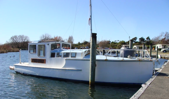 INPUT ex PAUL DRAKE – The Tokaanu launch is PRIVATEER. She appeared on woodys in 2015. She was the last boat to be ejected from the old Motuaopa Marina before it was re developed. In about 2221 she was purchased from the Harbour Master as an abandoned vessel. Her new (Auckland) owner has done well to get her to the stage she is at, but the last step – getting her back in the water – seems to be eluding him. Good things take time……