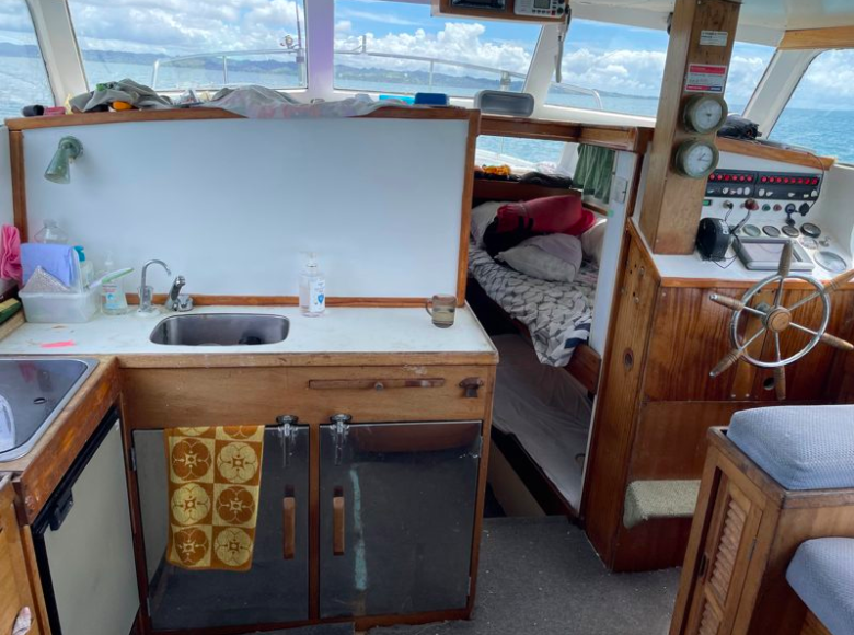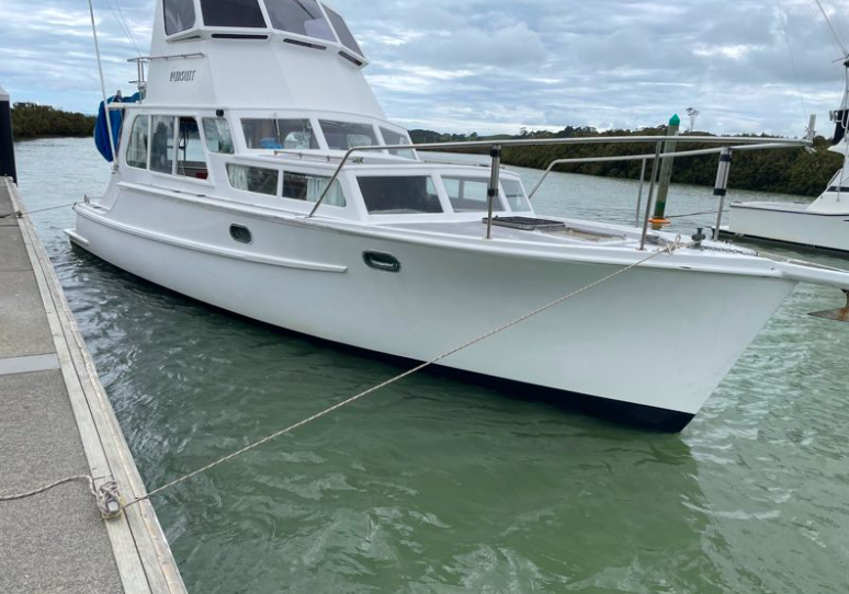Back in November 2019 while mooching up the Wairau River on-route to the Clevedon Cruising Club for our Woodys overnight BBQ, I spotted the launch – Pursuit on a swing mooring.