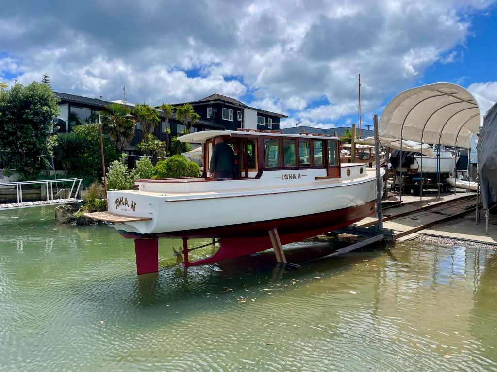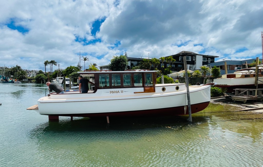 A couple of weeks ago we reported on the work underway on the classic Lidgard built wooden launch MONTEREY at the Slipway Milford yard – link below https://waitematawoodys.com/2025/11/14/classic-lidgard-launch-monterey-gets-a-birthday/